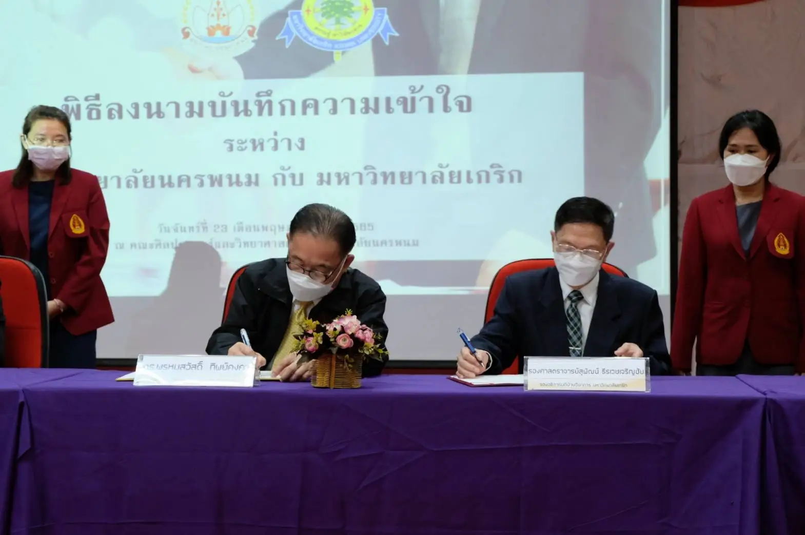 เมื่อวันที่ 23 พฤษภาคม 2565 รองศาสตราจารย์สุพัฒน์ ธีรเวชเจริญชัย รองอธิการบดีฝ่ายวิชาการ DR.MING HSUN HSIE คณบดีคณะศิลปศาสตร์ และ DR.LUO YONG คณบดีวิทยาลัยนานาชาติภาษาและวัฒนธรรมจีน ได้เดินทางไปร่วมลงนามความร่วมมือทางวิชาการ กับ ม.นครพนม โดยมี ดร.พรหมสวัสดิ์ ทิพย์คงคา รักษาราชการแทนอธิการบดีมหาวิทยาลัยนครพนม เป็นผู้ร่วมลงนาม