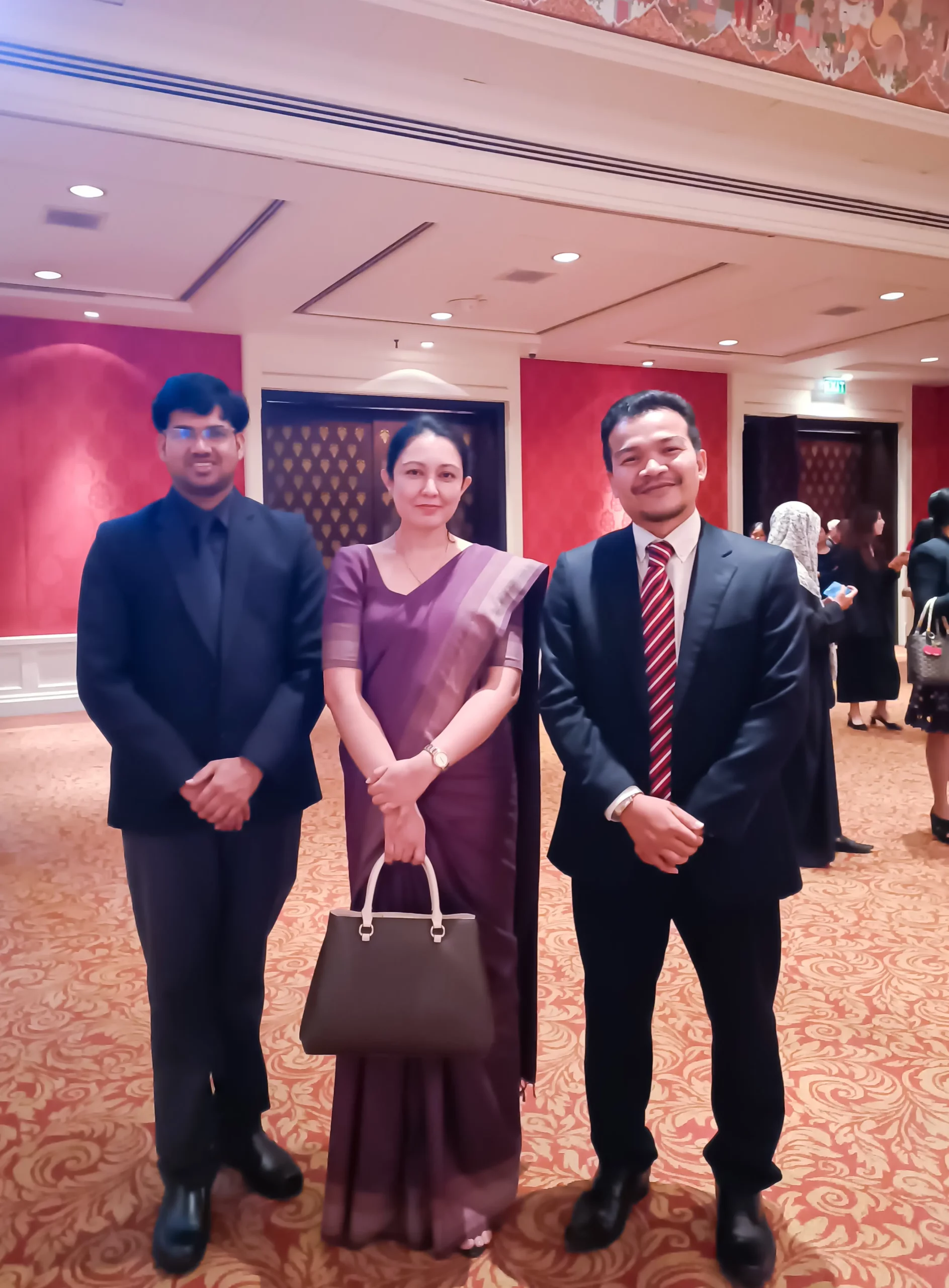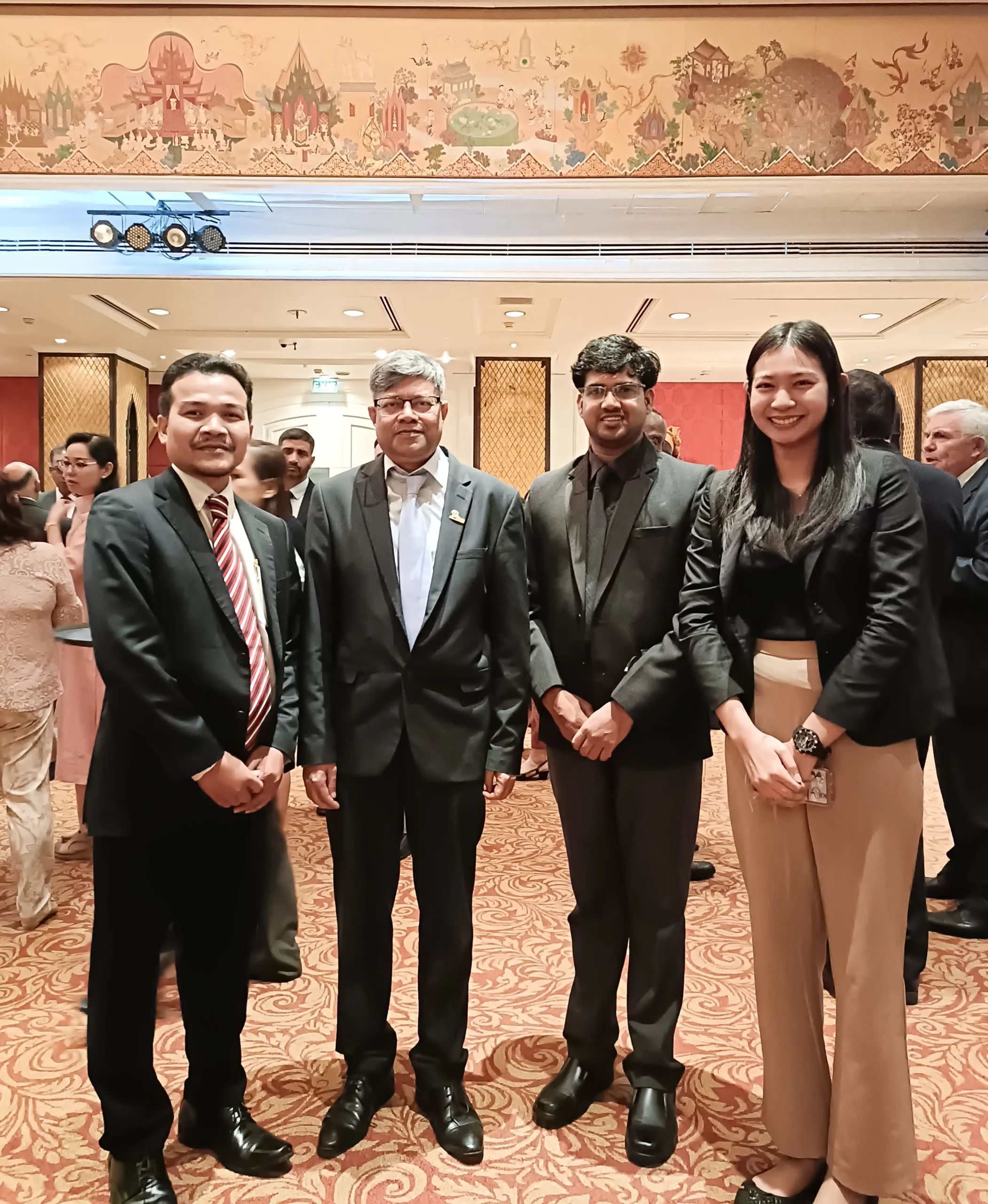 เมื่อวันอังคารที่ 26 มีนาคม 2567 เวลา 18.00 น. ศ.ดร.จรัญ มะลูลีม รองอธิการบดีฝ่ายการต่างประเทศและคณบดีวิทยาลัยนานาชาติอิสลามกรุงเทพ ได้มอบหมายให้ นายมูฮำหมัด รักไทรทอง นางสาวสุภัสรา รุดไพร และนาย Dhiraj Kumar Shakya เจ้าหน้าที่ประจำสำนักงานการต่างประเทศ มหาวิทยาลัยเกริก เป็นผู้แทนเดินทางเข้าร่วมงานเฉลิมฉลองครบรอบ 53 ปี เฉลิมฉลองวันชาติและวันประกาศเอกราชบังกลาเทศ ณ โรงแรมอนันตรา สยาม กรุงเทพฯ โดยมีนาย มูฮำหมัด อับดุ้ล ไฮต์ (Mohammed Abdul Hye) เอกอัครราชทูตบังกลาเทศประจำประเทศไทยให้การต้อนรับ