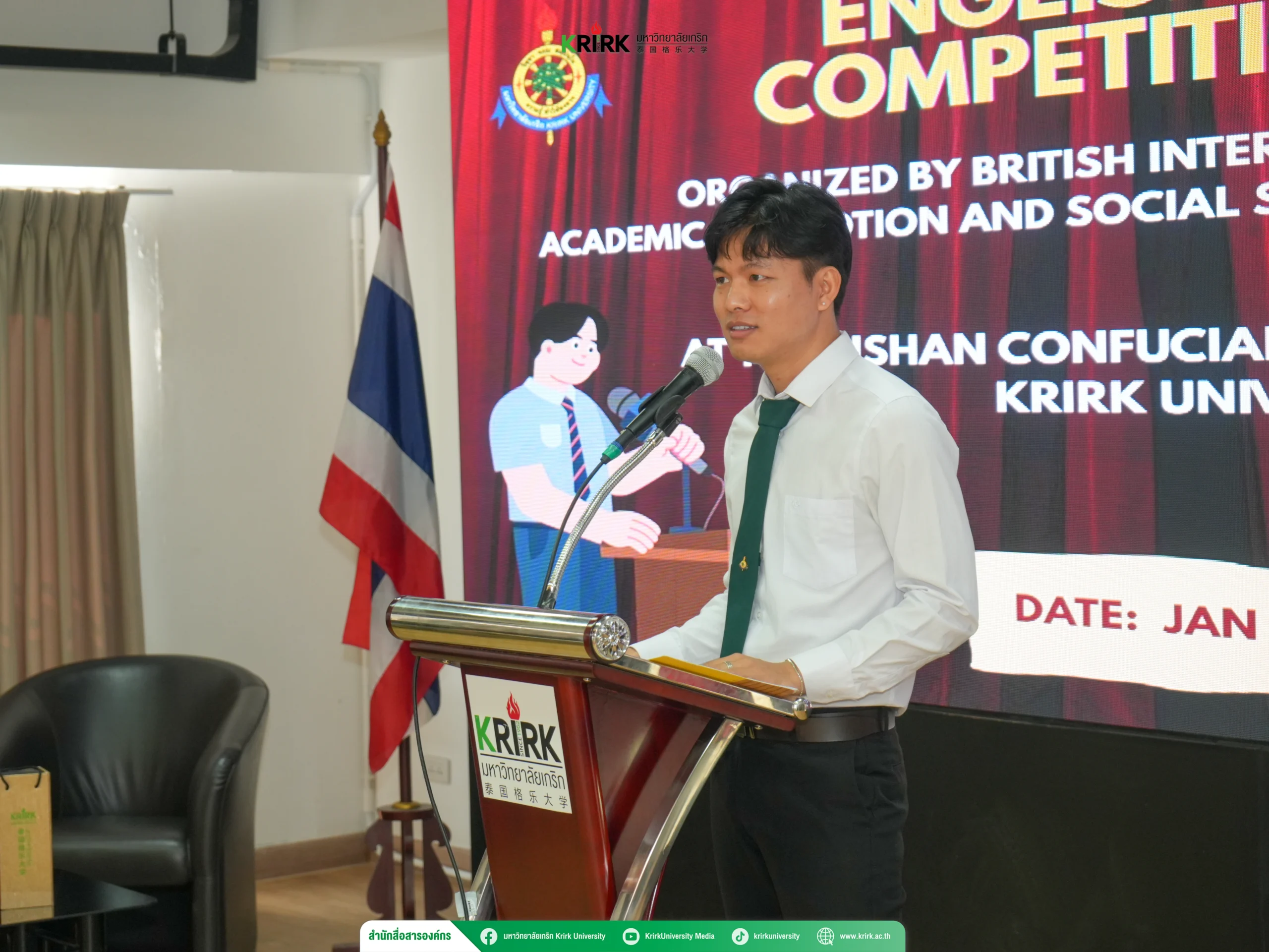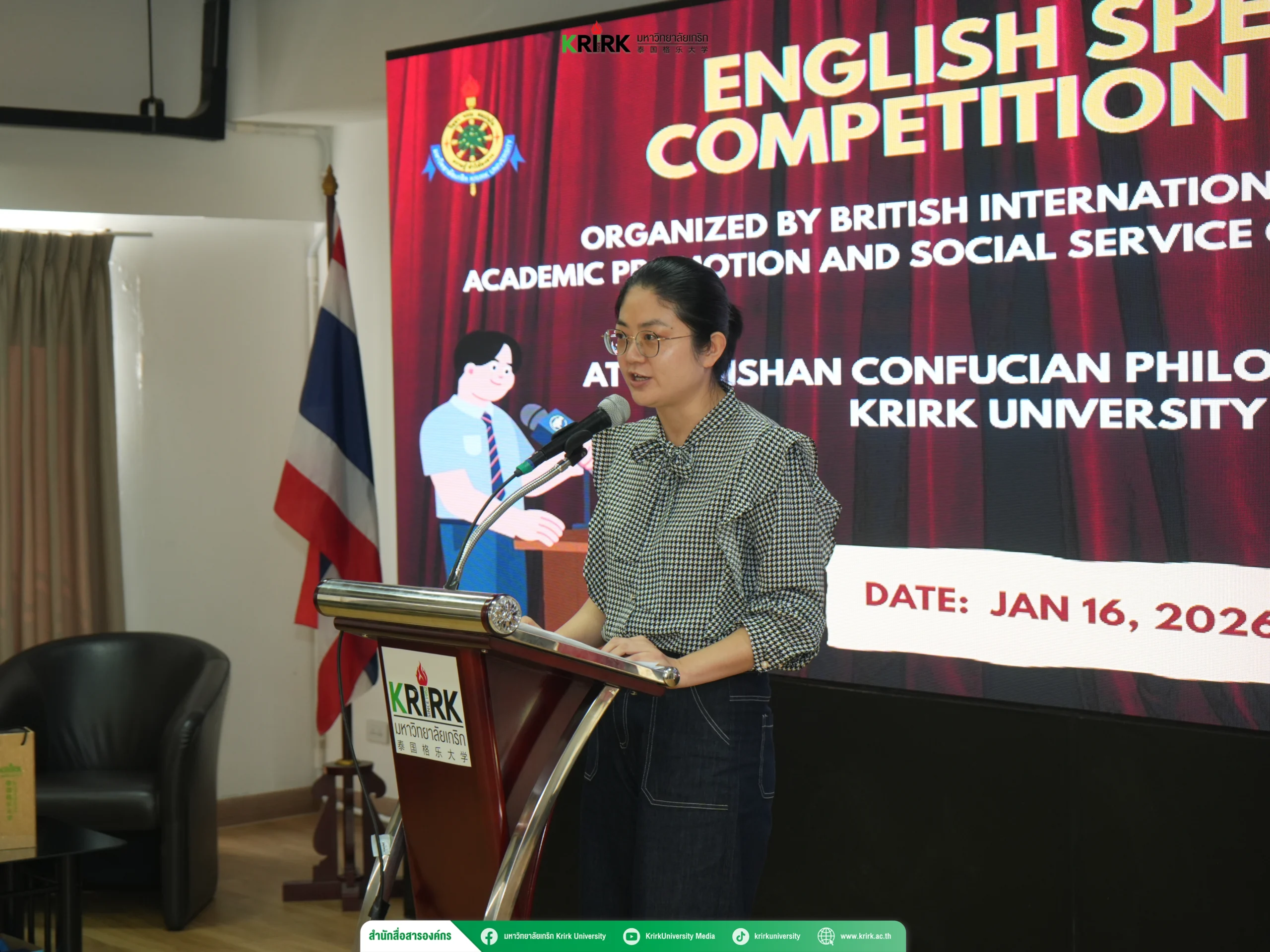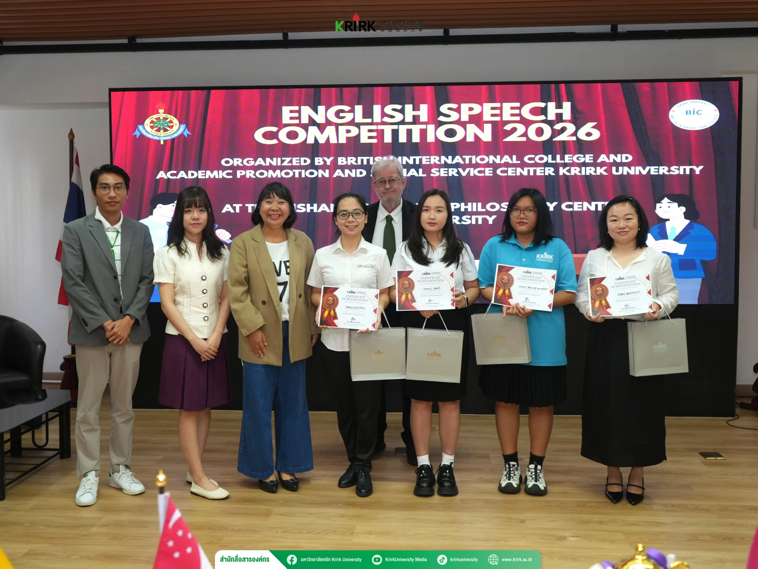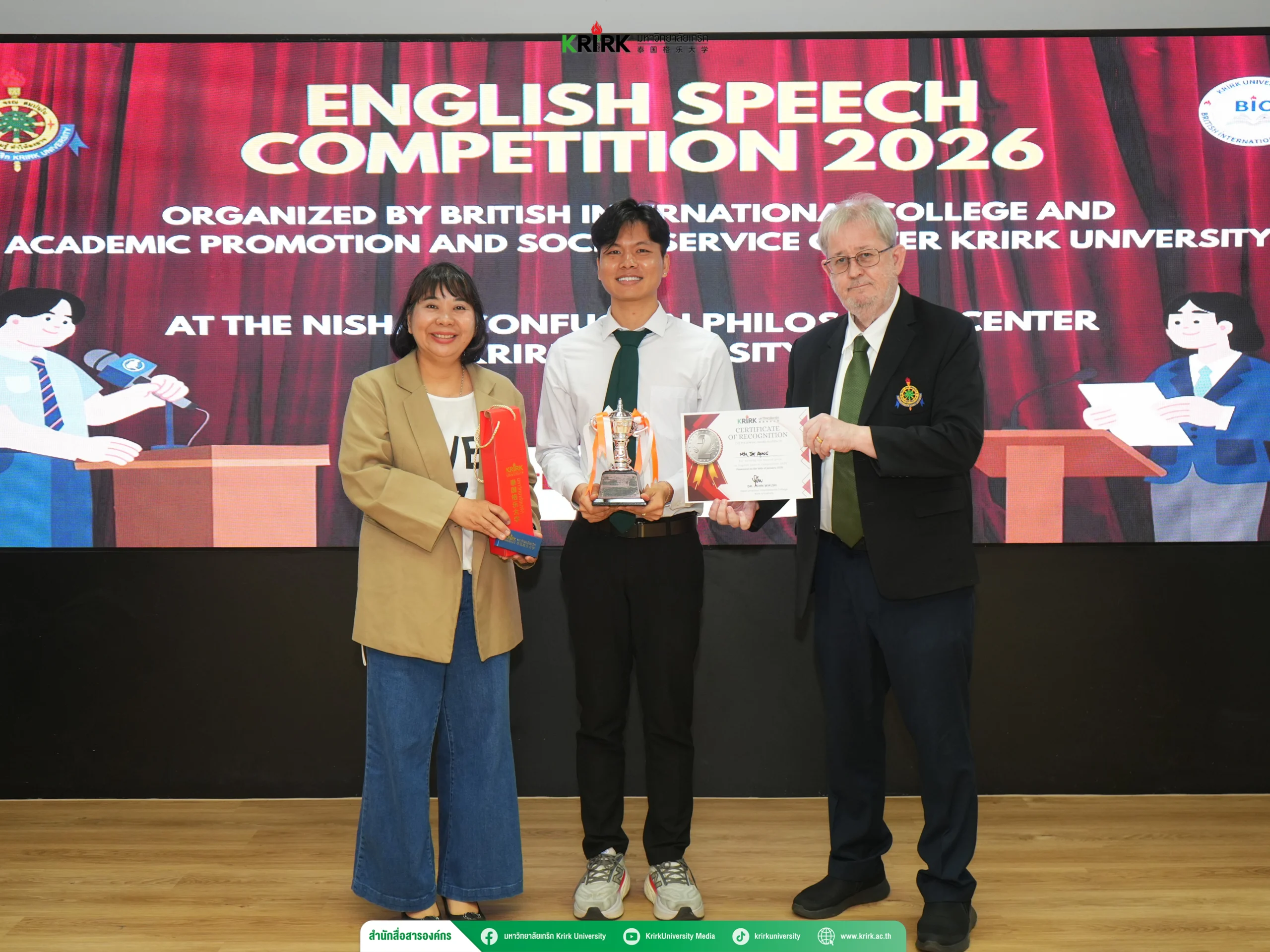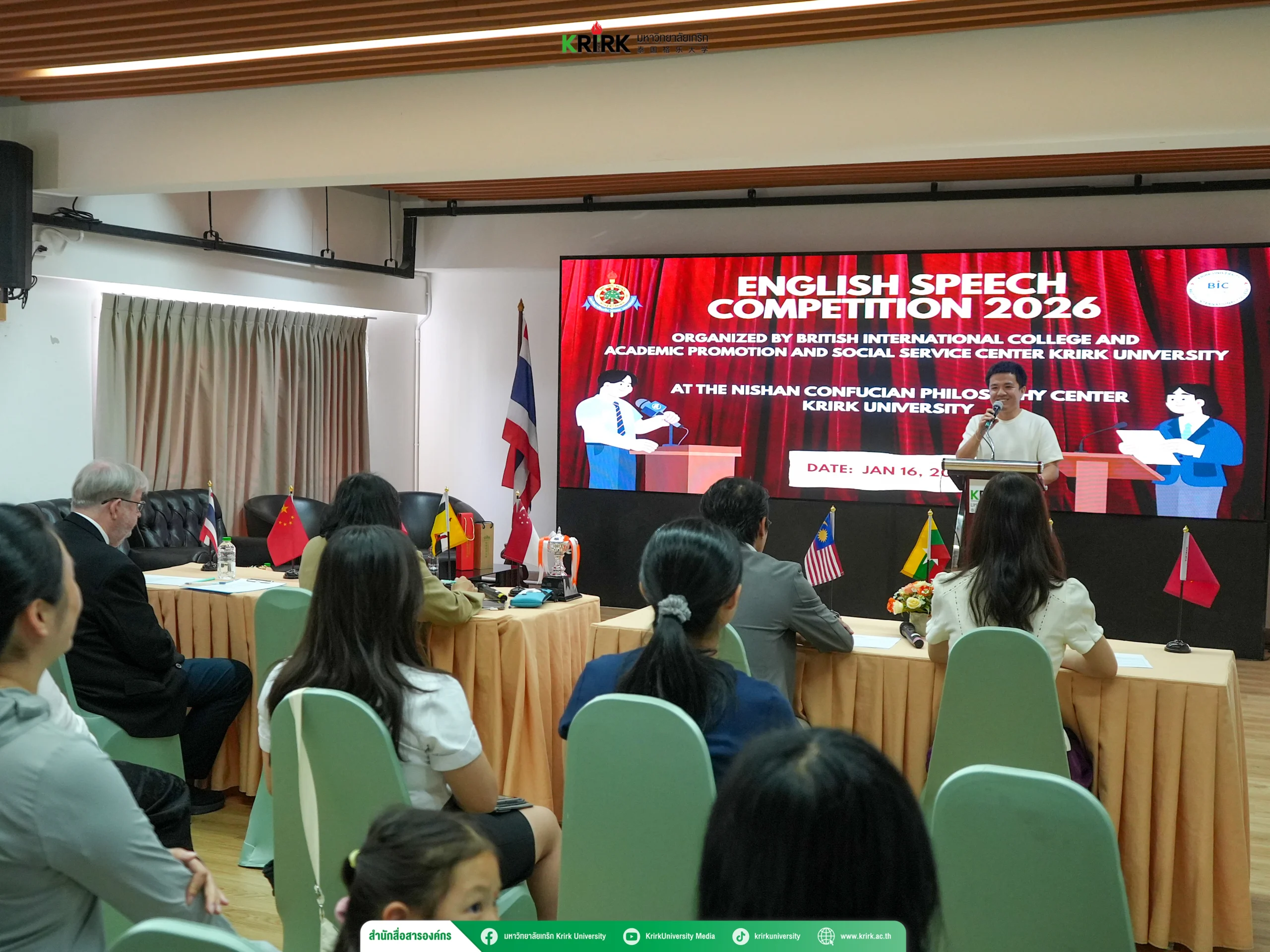 เมื่อวันที่ 16 มกราคม พ.ศ. 2569 ได้มีการจัดการแข่งขันสุนทรพจน์ภาษาอังกฤษในหัวข้อ “Think Smart, Speak Loud” 🗣️ โดย วิทยาลัยนานาชาติบริติช (British International College: BIC) ร่วมกับ ศูนย์ส่งเสริมและบริการวิชาการแก่สังคม ณ ศูนย์ปรัชญาขงจื๊อหนี่ซาน มหาวิทยาลัยเกริก การจัดกิจกรรมครั้งนี้มีวัตถุประสงค์เพื่อส่งเสริมให้นักศึกษาได้พัฒนาทักษะการพูดภาษาอังกฤษ การคิดเชิงวิพากษ์ และการสื่อสารภาษาอังกฤษในบริบททางวิชาการ อันเป็นทักษะสำคัญในสังคมโลกยุคปัจจุบัน