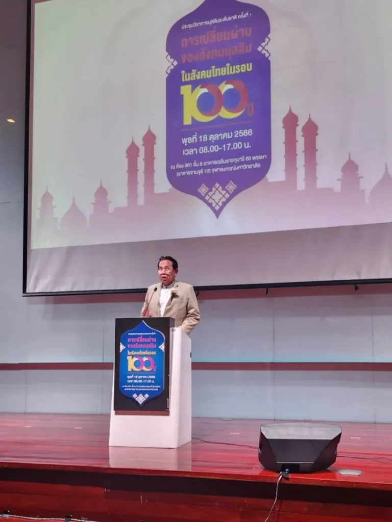 ศ.ดร.จรัญ มะลูลีม รองอธิการฝ่ายการต่างประเทศ มหาวิทยาลัยเกริก เป็นองค์ปาฐกในปิดพิธีงานประชุมวิชาการระดับชาติครั้งที่ 1 เรื่อง การเปลี่ยนผ่านของสังคมมุสลิมในสังคมไทยในรอบ 100 ปี วันที่ 18 ตุลาคม 2566 ณ อาคารเฉลิมพระเกียรติ 60 พรรษา จุฬาลงกรณ์มหาวิทยาลัย