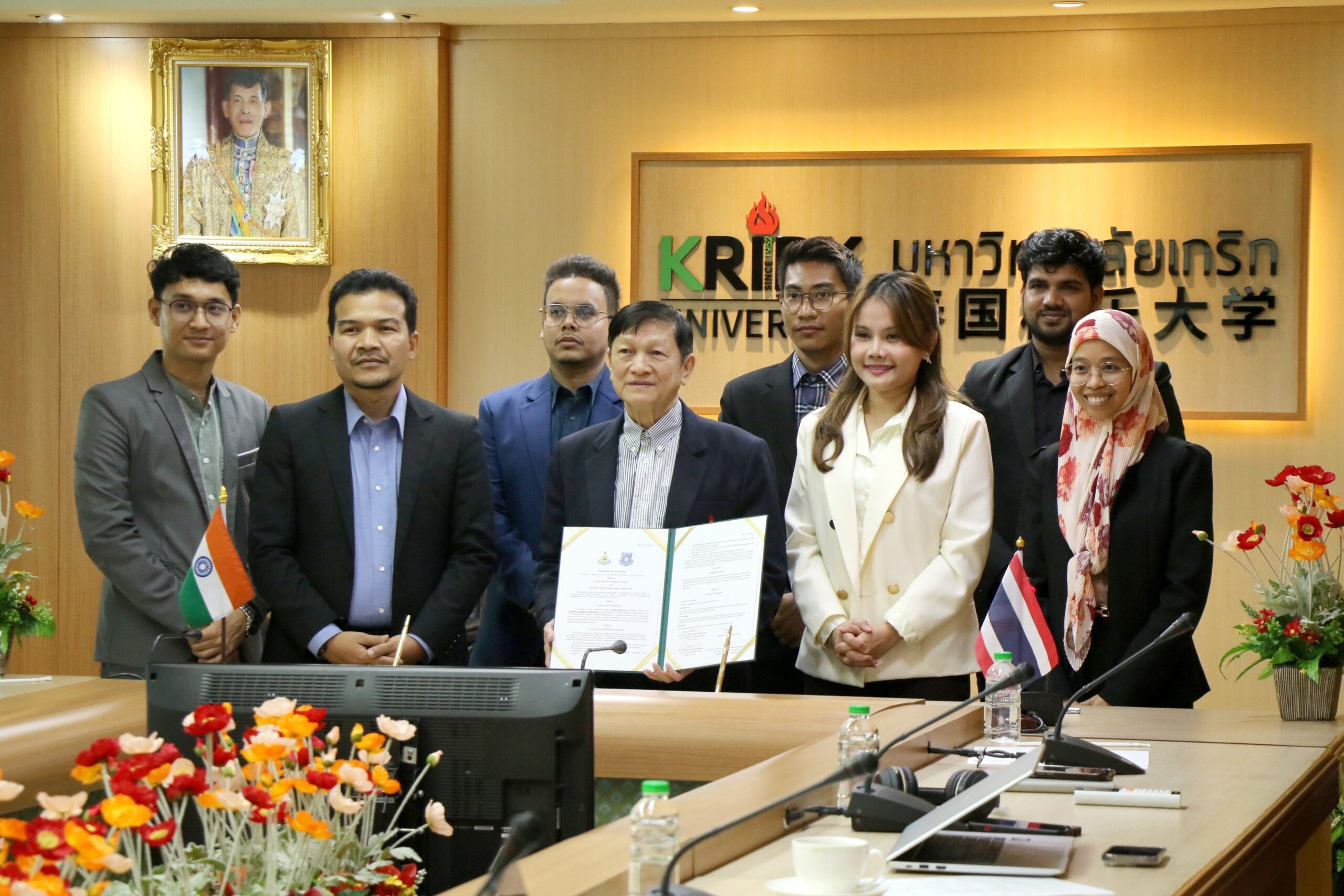 On December 26, 2024, at 3:00 PM, Krirk University executives, led by Assoc. Prof. Supat Teravecharoenchai, Vice President for Academic Affairs, and Dr. Chanidapha Nunualvuttiwong, Assistant to the Chairman for International Education Development, and Director of International Affairs, along with faculty members and staff, participated in an online meeting and signing ceremony of a Memorandum of Understanding (MOU) with Jerusalem College of Engineering (JCE), India.