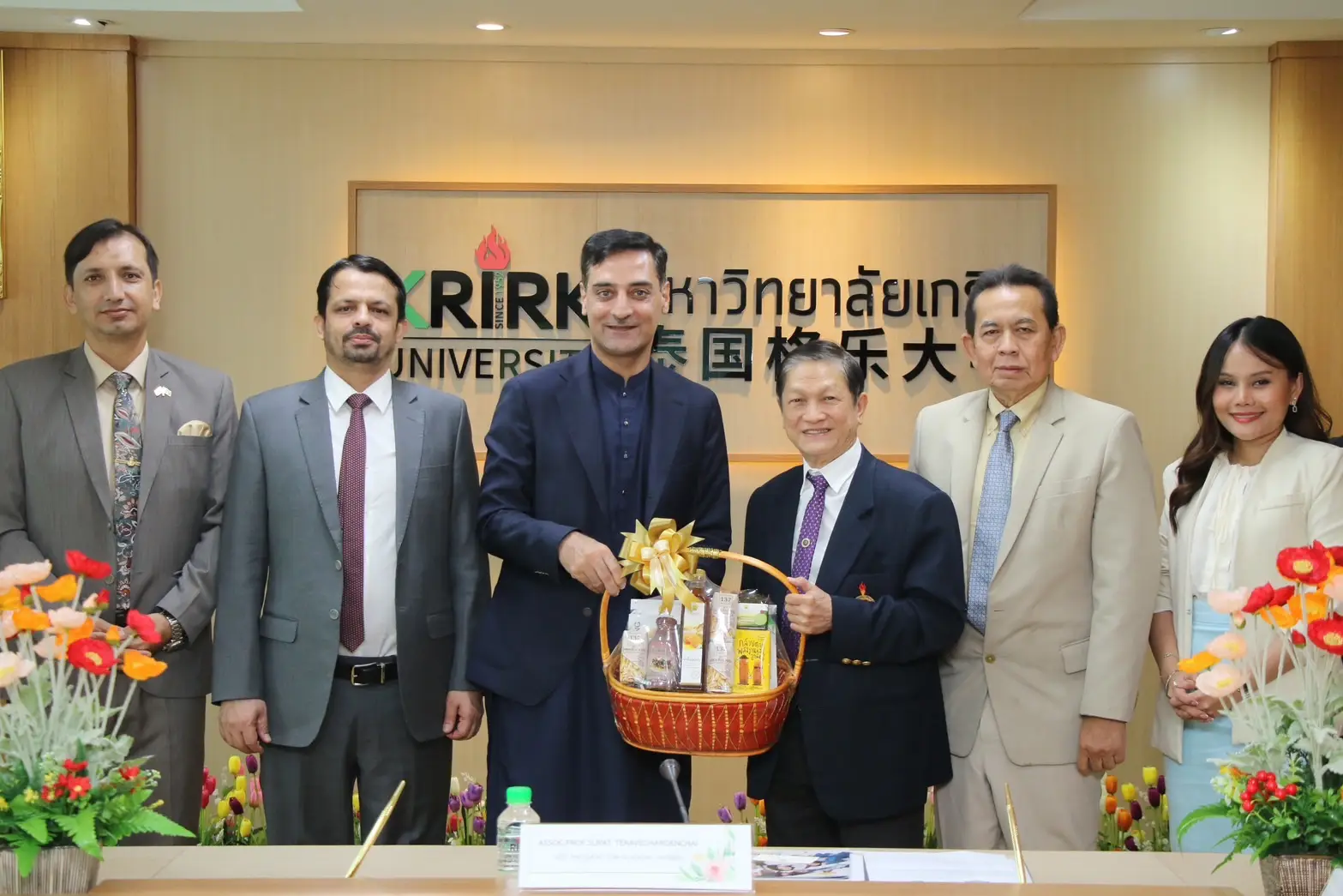 Associate Professor Supat Teravecharoenchai, Vice President for Academic Affairs, and Prof. Dr. Jaran Maluleem, Vice President for International Affairs, warmly welcomed a high-level delegation from the Pakistan Embassy and conveyed gratitude to Mr. Yasir Hussain, Head of Mission, for his recent visit to Krirk University.