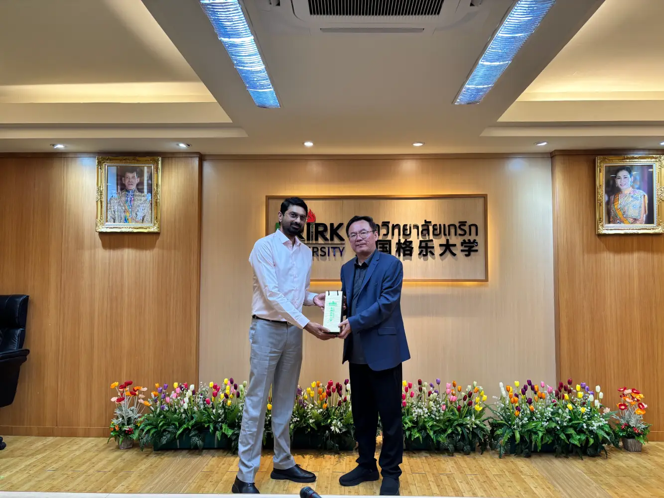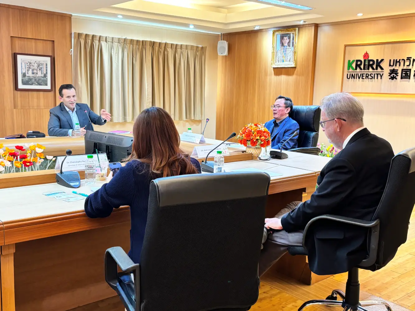 Later in the program, Mr. Wang Changming, Chairman of Krirk University, joined the delegation and university representatives for a special session that included the exchange of commemorative gifts and an official photo opportunity. This moment symbolized the growing friendship and mutual respect between the two institutions.