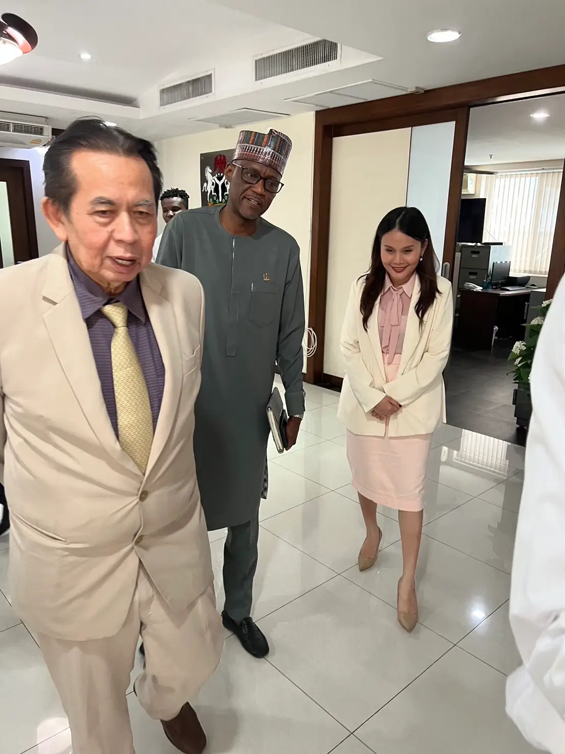 The Krirk delegation, comprising Prof. Dr. Jaran Maluleem, Vice President of International Affairs; Miss Chanidapha Nunualvuttiwong, Director of International Affairs; and Miss Virasinee Luevisadpaibul, Embassy Coordination Officer, presented a united front in showcasing the university’s international academic environment. The Nigerian representatives were H.E. Mr. Mohammed Haidara, Charge d’Affaires, and Ms. Sonari M. Uraih, Counsellor.