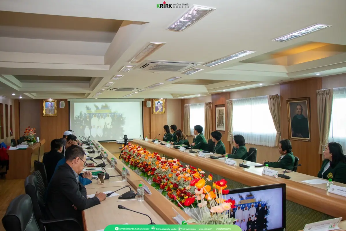 December 19, 2023 Professor Nop Krasae Chanawong, President of Krirk University, professor Amphon Thamwilai, Assistant Professor to the Krirk University Executive committee, Professor to the Yingsak Sitttiyakorn, Assistant vice president for special Affairs, Dr. Bandit Aro. Man, Assistant, vice president for foreign Affairs, and educators from Bangkok Islamic International College joined in welcoming Islamic College of Thailand, which was delivered by teacher Worasit Yuan, school Deputy Director, and teacher Surin Srichon school Acadamic Administration Group.