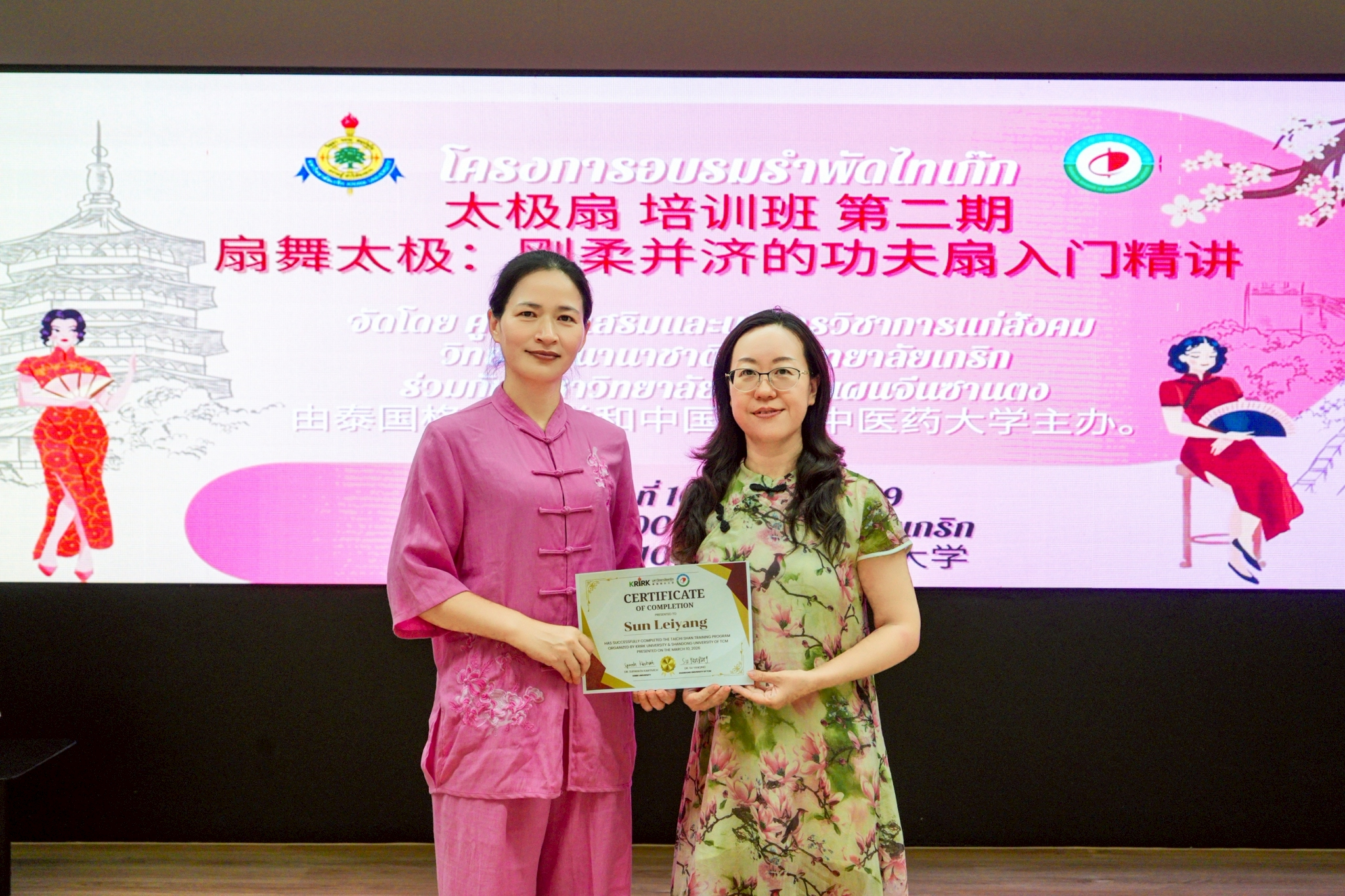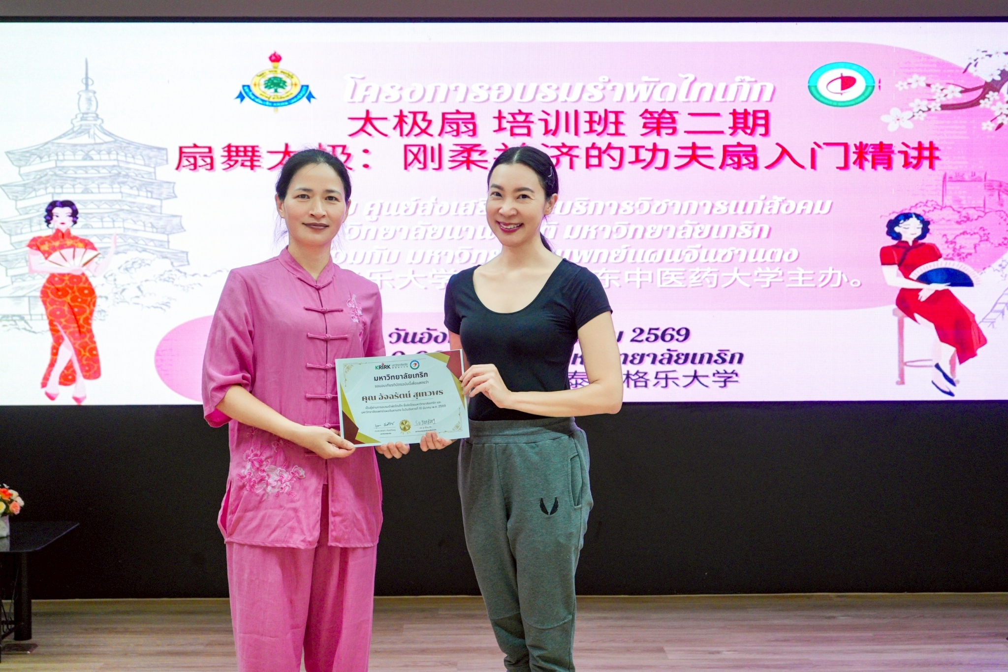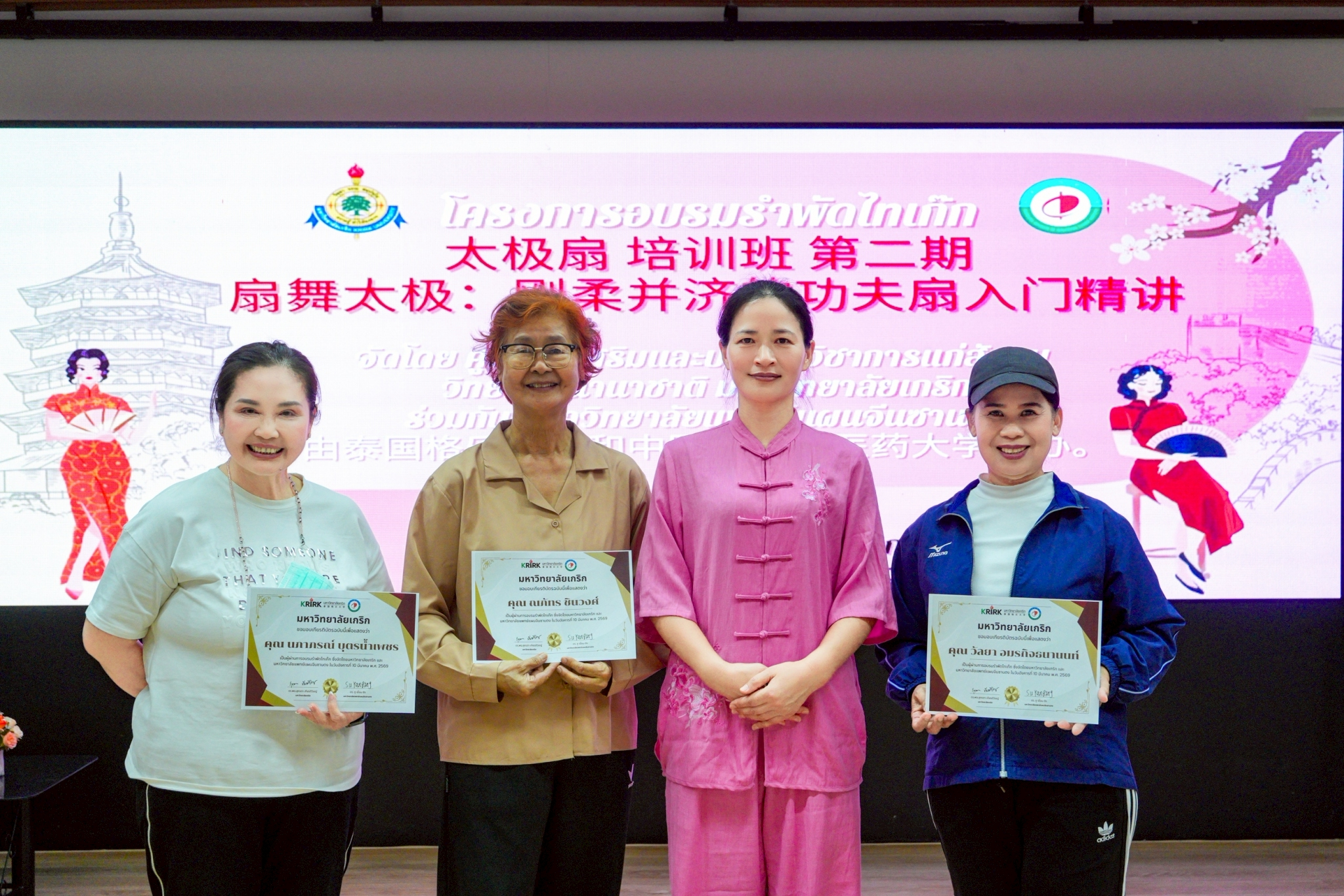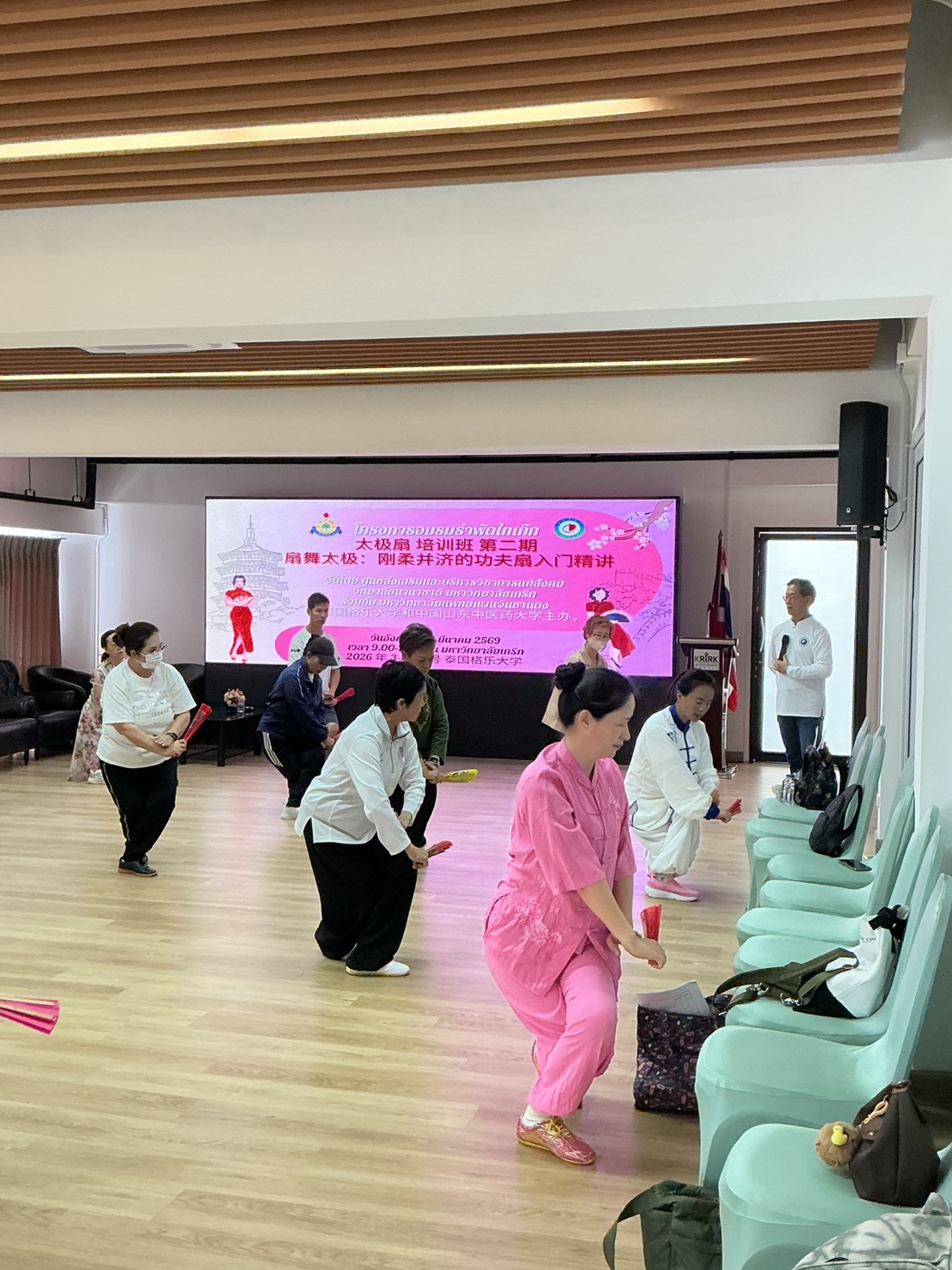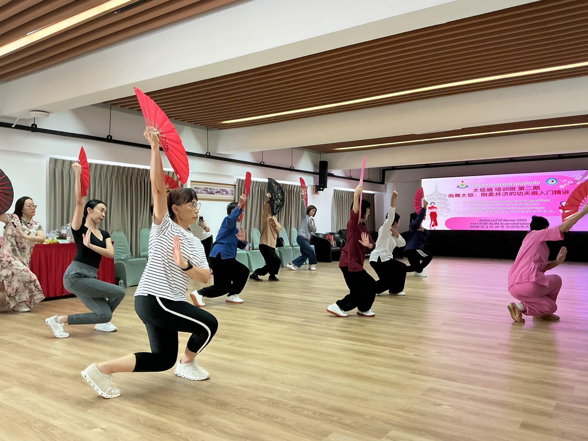 เมื่อวันที่ 11 มีนาคม 2569 วิทยาลัยนานาชาติ และ ศูนย์ส่งเสริมและบริการวิชาการแก่สังคม มหาวิทยาลัยเกริก ร่วมกับมหาวิทยาลัยแพทย์แผนจีนซานตง ร่วมจัดการอบรมรำพัดไทเก๊ก ณ มหาวิทยาลัยเกริก โดยมีคณาจารย์ นักศึกษา และผู้สนใจเข้าร่วมอย่างคึกคัก กิจกรรมดังกล่าวสะท้อนความร่วมมือในการส่งเสริมกีฬาสุขภาวะแบบดั้งเดิมและการแลกเปลี่ยนวัฒนธรรมไทย–จีนอย่างเป็นรูปธรรม
