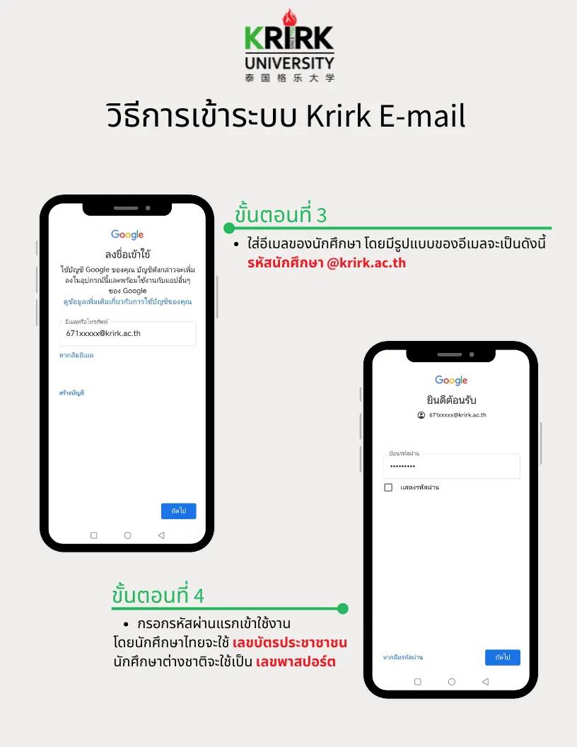 หมายเหตุ : นักศึกษาที่ยังไม่มี E-mail ให้ติดต่อที่ ศูนย์เทคโนโลยีสารสนเทศ หรือ ขอทาง Online โดยการกรอกแบบฟอร์ม