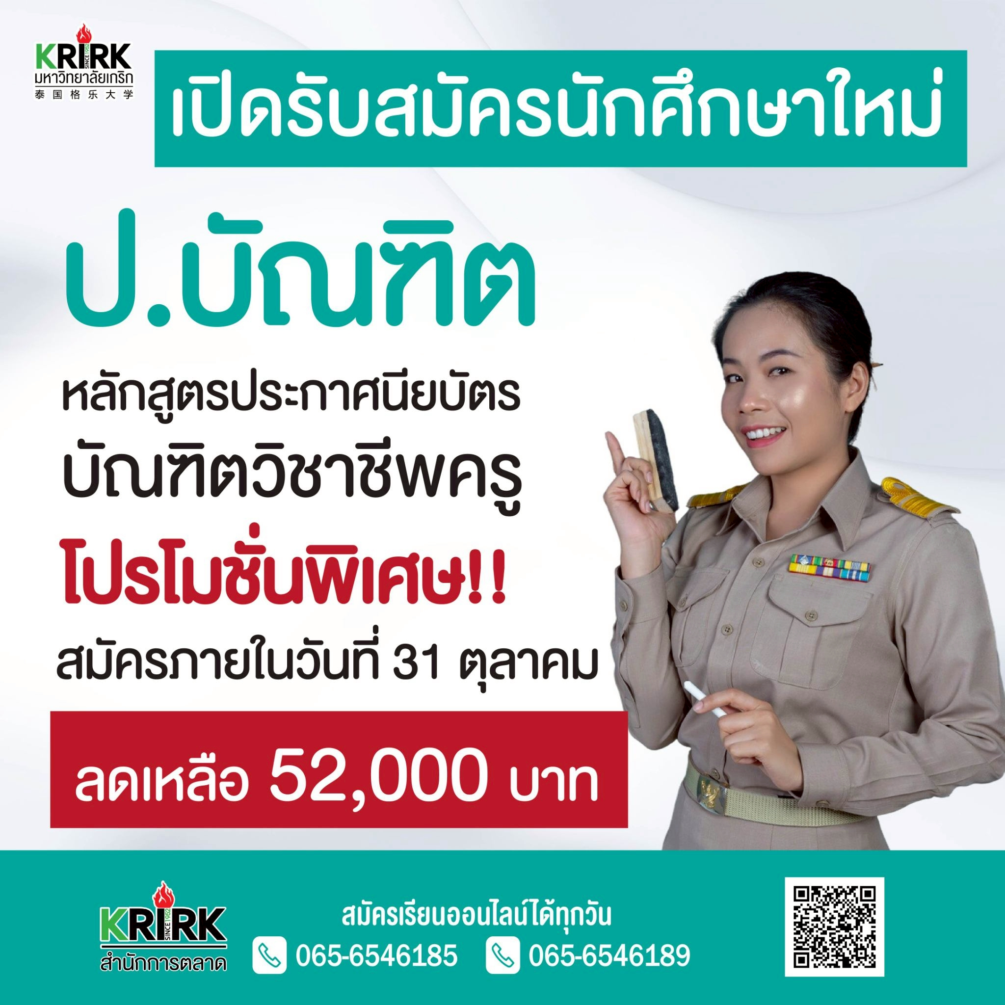 มหาวิทยาลัยเกริก เปิดรับสมัครหลักสูตรประกาศนียบัตรบัณฑิตวิชาชีพครู ภาคปลาย 2568