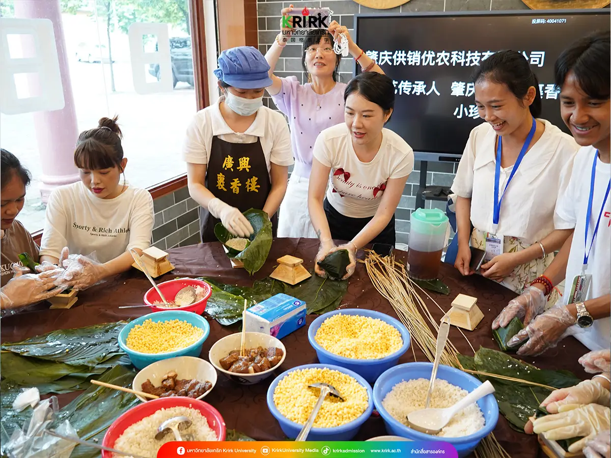 เมื่อวันที่ 3 มิถุนายน 2567 คณะอาจารย์และนักศึกษาแลกเปลี่ยนระยะสั้นกลุ่ม 2 มหาวิทยาลัยเกริก ได้เข้าเยี่ยมชมอุทยาน Zhaoqing bu zhi ding hu shan ซึ่งเป็นแหล่งศึกษาระบบนิเวศวิทยาที่ดีที่สุดและสมบูรณ์ที่สุดในเมืองจ้าวชิ่ง เป็นแหล่งท่องเที่ยวที่นักท่องเที่ยวจากทั่วโลกหลั่งไหลกันมาอย่างไม่ขาดสาย ต่อมาในช่วงบ่ายคณะจากมหาวิทยาลัยเกริกได้เข้าไปเรียนวิธีการทำขนมบ๊ะจ่างหรือขนมที่ขึ้นชื่อที่สุดของประเทศจีน ซึ่งอีกไม่กี่วันก็จะมีเทศกาลขนมบ๊ะจ่างเกิดขึ้นแล้ว นี่ถือเป็นโอกาสที่ดี ที่นักศึกษาของเราได้มาเรียนรู้ประเพณีวัฒนธรรมของประเทศจีนอย่างลึกซึ้ง อีกทั้งยังได้ลองทำขนมด้วยฝีมือตนเองอีกด้วย