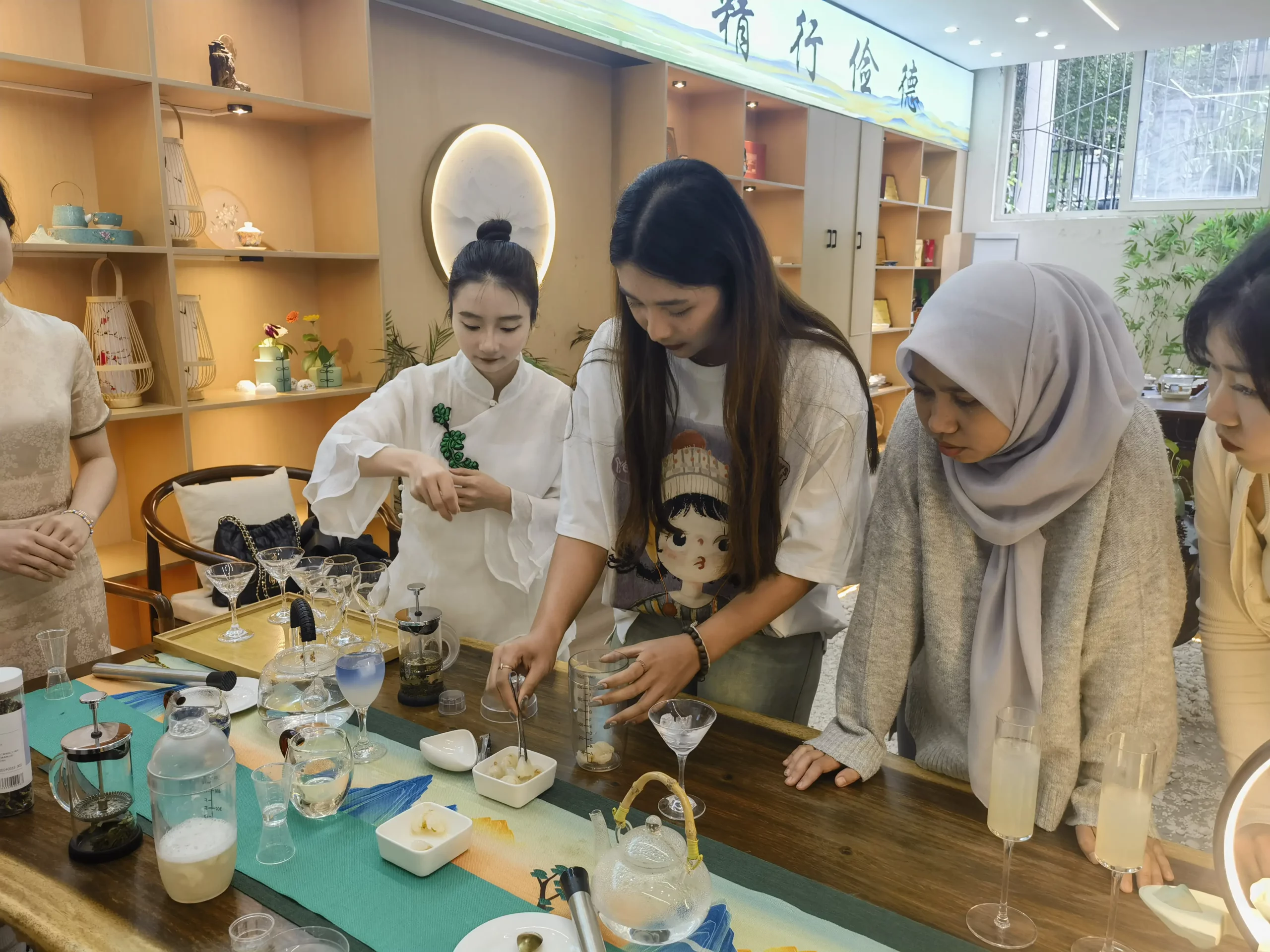 ในช่วงบ่ายนักศึษา ได้เรียนรู้ศิลปะการชงชา และได้เรียนรู้ประวัติศาสตร์ประเพณีของวัฒนธรรมชาจีนอีกด้วย และได้ความรู้จากศาสตราจารย์ Zhao Lin ศิลปินชาชั้นนำระดับชาติ ในระหว่างชั้นเรียน นักศึกษาได้ลงมือปฏิบัติการชงชาแบบโบราณ บรรยากาศสนุกสนาน อบอุ่น และเป็นกันเอง