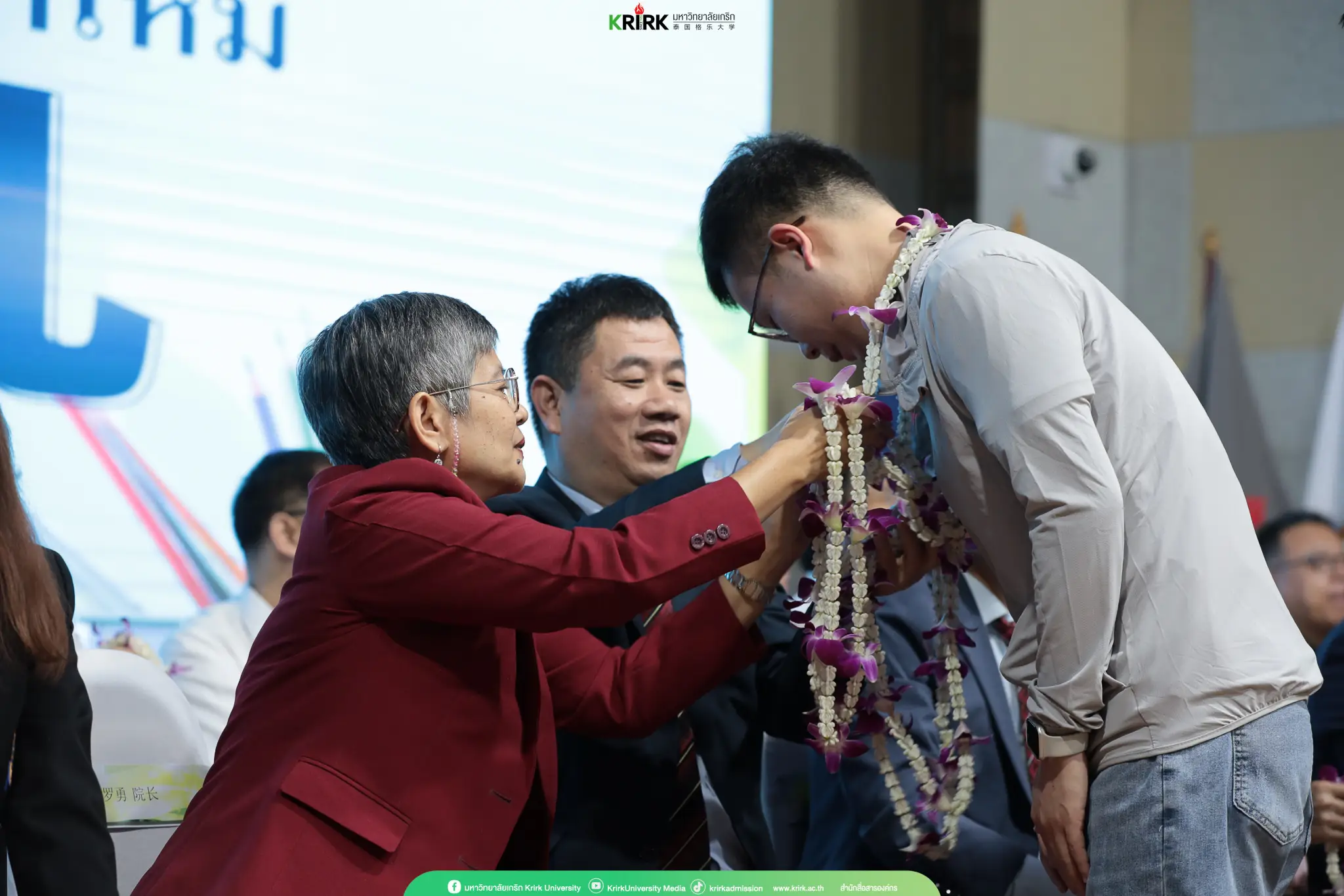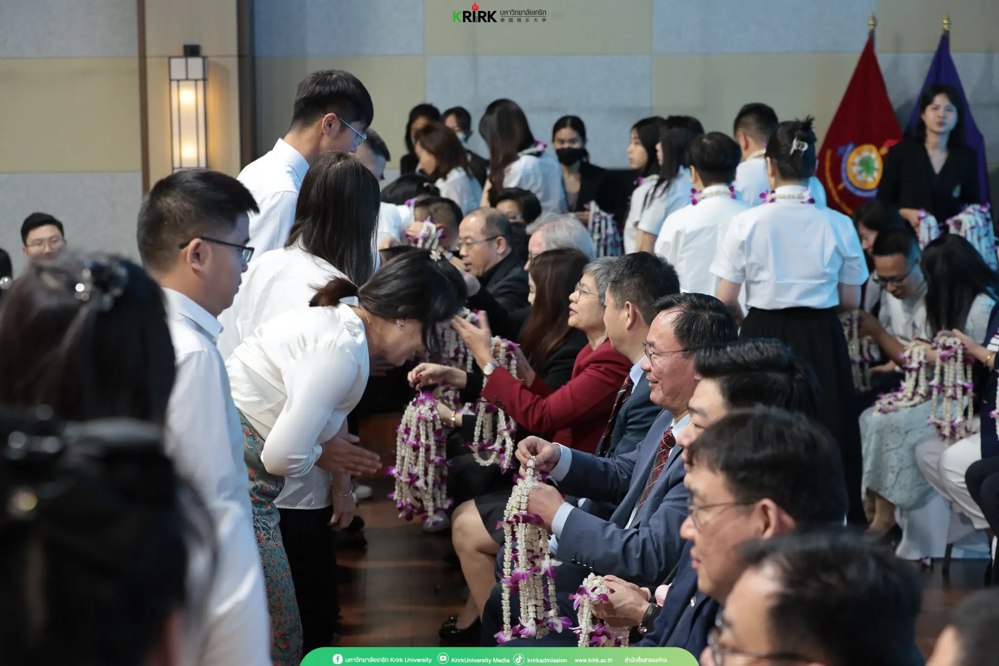 จากนั้นได้จัดพิธีไหว้ครูจากนักศึกษาดีเด่น และต้อนรับนักศึกษาใหม่ด้วยการสวมพวงมาลัยดอกไม้เพื่อแสดงถึงการต้อนรับการเป็นศิษย์ของมหาวิทยาลัยเกริก ต่อด้วยการมอบเกียรติบัตรให้แก่นักศึกษาดีเด่น จบกิจกรรมด้วยการชี้แจงข้อปฏิบัติต่าง ๆ ในการเรียน และการใช้ชีวิตภายนอกและในมหาวิทยาลัยเป็นการจบกิจกรรม