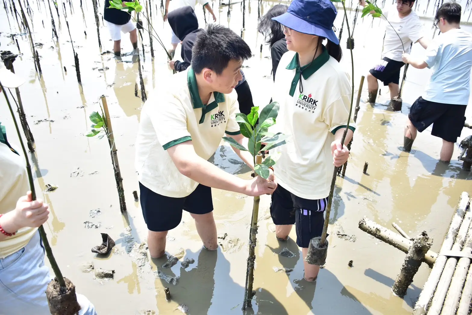 โดยนักศึกษามหาวิทยาลัยเกริก ได้ลงมือปฏิบัติปลูกต้นโกงกางคนละ 1-2 ต้น และได้ใกล้ชิดกับธรรมชาติของป่าชายเลนอย่างดินโคลน และสัตว์น้ำหลากหลายชนิด