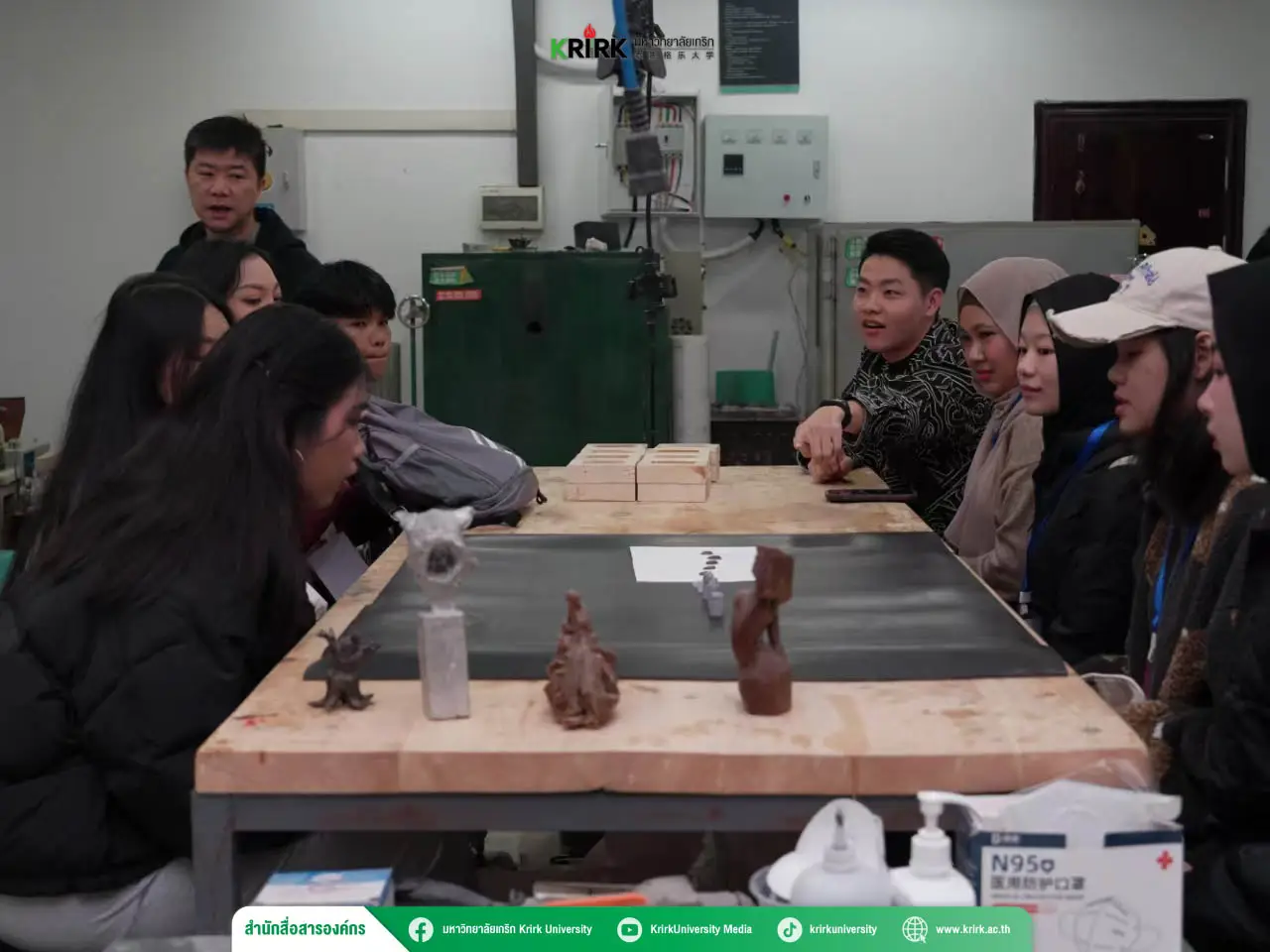 นักศึกษาแลกเปลี่ยนระยะสั้นของมหาวิทยาลัยเกริก ได้เข้าร่วมกิจกรรมพิเศษเพื่อเรียนรู้กระบวนการหล่อรูปปั้นสำริดอย่างใกล้ชิด ณ มหาวิทยาลัย Hubei Institute of Fine Art