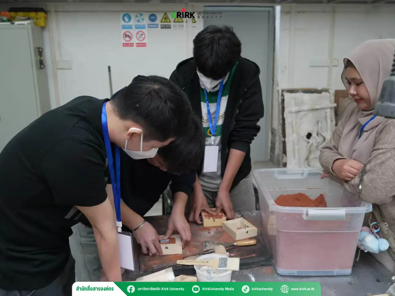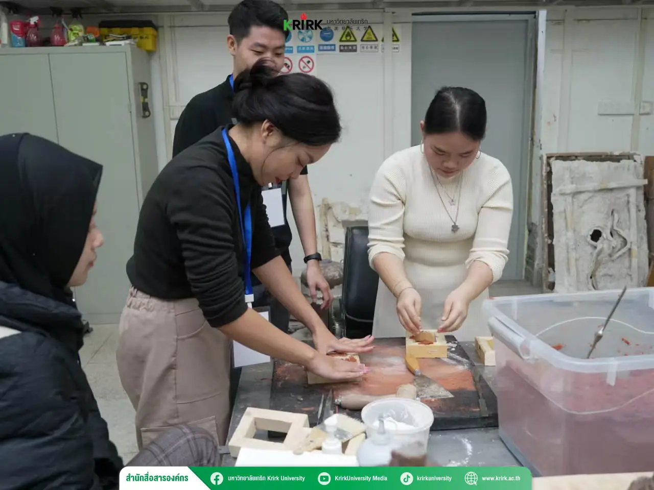เมื่อวันอังคารที่ 3 ธันวาคม 2567 กลุ่มนักศึกษาแลกเปลี่ยนของมหาวิทยาลัยเกริก ได้เข้าร่วมกิจกรรมพิเศษเพื่อเรียนรู้กระบวนการหล่อรูปปั้นสำริดอย่างใกล้ชิด ณ มหาวิทยาลัย Hubei Institute of Fine Art กิจกรรมครั้งนี้นักศึกษาได้ทดลองลงมือทำตามขั้นตอนต่าง ๆ ตั้งแต่การเตรียมวัสดุแม่พิมพ์ การเทหล่อสำริด และการขัดตกแต่งผลงานให้สมบูรณ์ นอกจากนี้ยังมีการพาเดินชม “ห้องนิทรรศการแสดงผลงานปั้น” ซึ่งจัดแสดงผลงานรูปปั้นจากศิลปินและนักศึกษารุ่นพี่ เพื่อสร้างแรงบันดาลใจให้กับผู้เข้าร่วม
