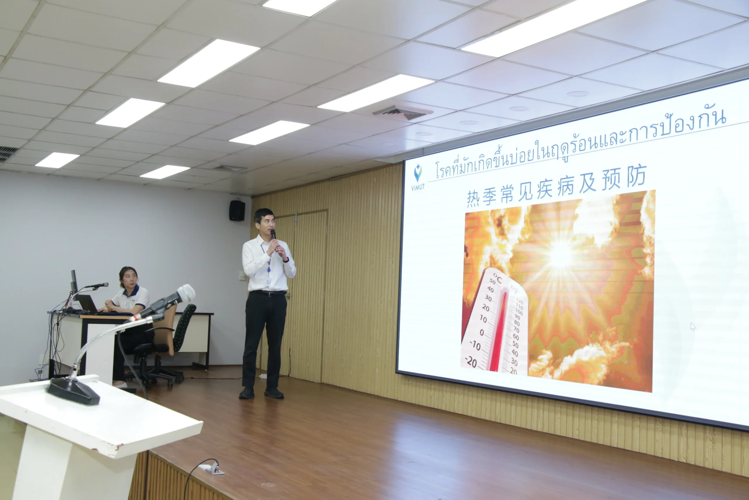โรงพยาบาลวิมุต ร่วมกับ สมาคมนักศึกษาและนักวิชาการชาวจีน วิทยาลัยนานาชาติ และศูนย์ส่งเสริมและบริการวิชาการแก่สังคม มหาวิทยาลัยเกริก ได้จัดกิจกรรมบรรยายพิเศษในหัวข้อ “โรคติดต่อในช่วงอากาศร้อน วิธีป้องกัน และคำแนะนำด้านวัคซีนสำหรับนักเรียน” เพื่อส่งเสริมความรู้ด้านสุขภาพและการป้องกันโรคติดต่อให้แก่นักศึกษาและผู้สนใจ