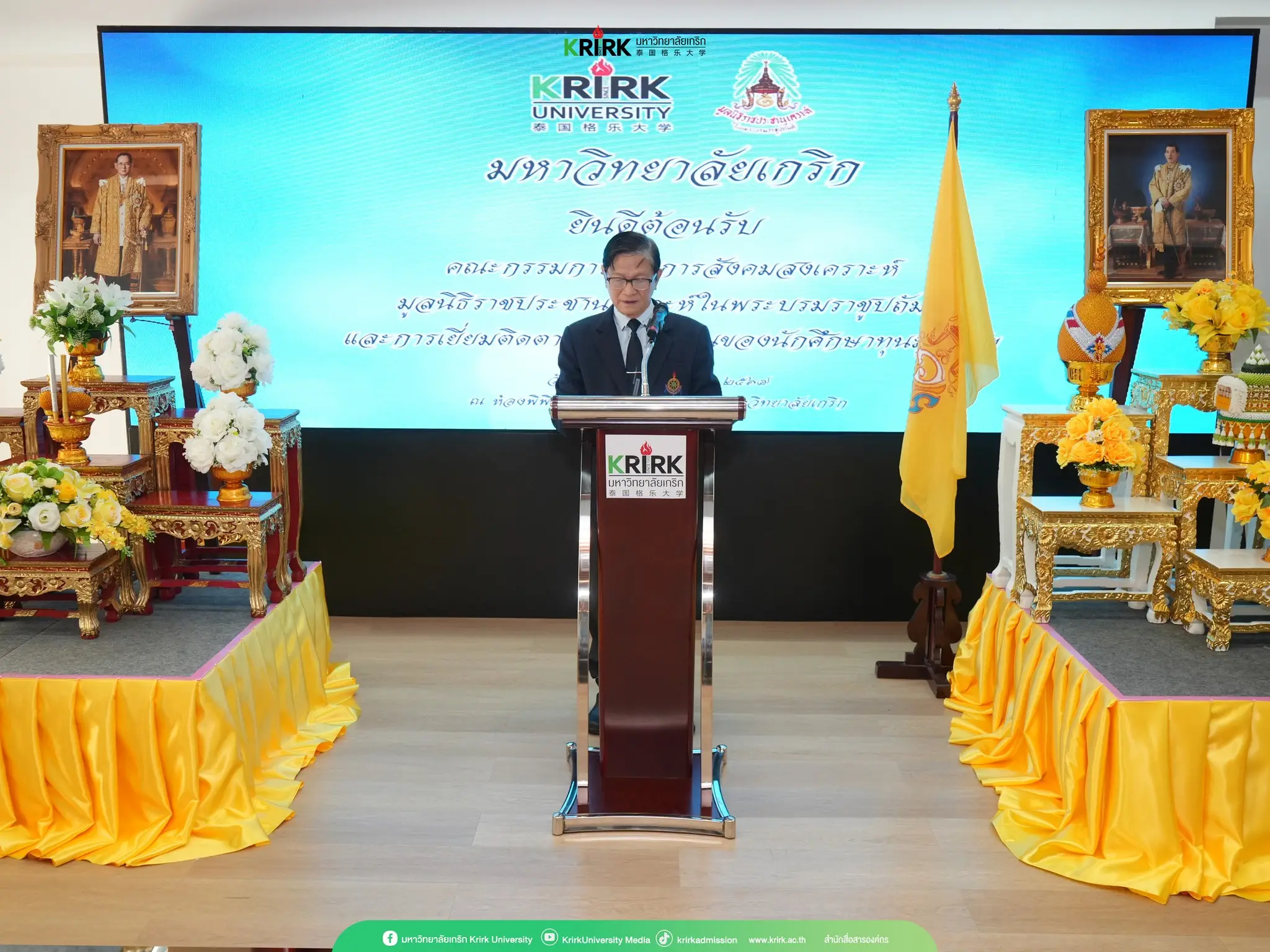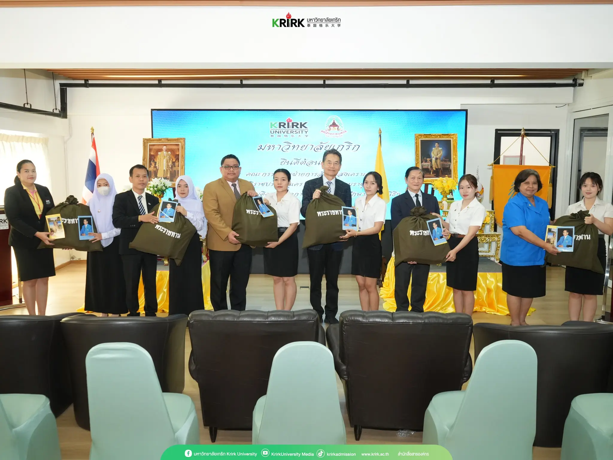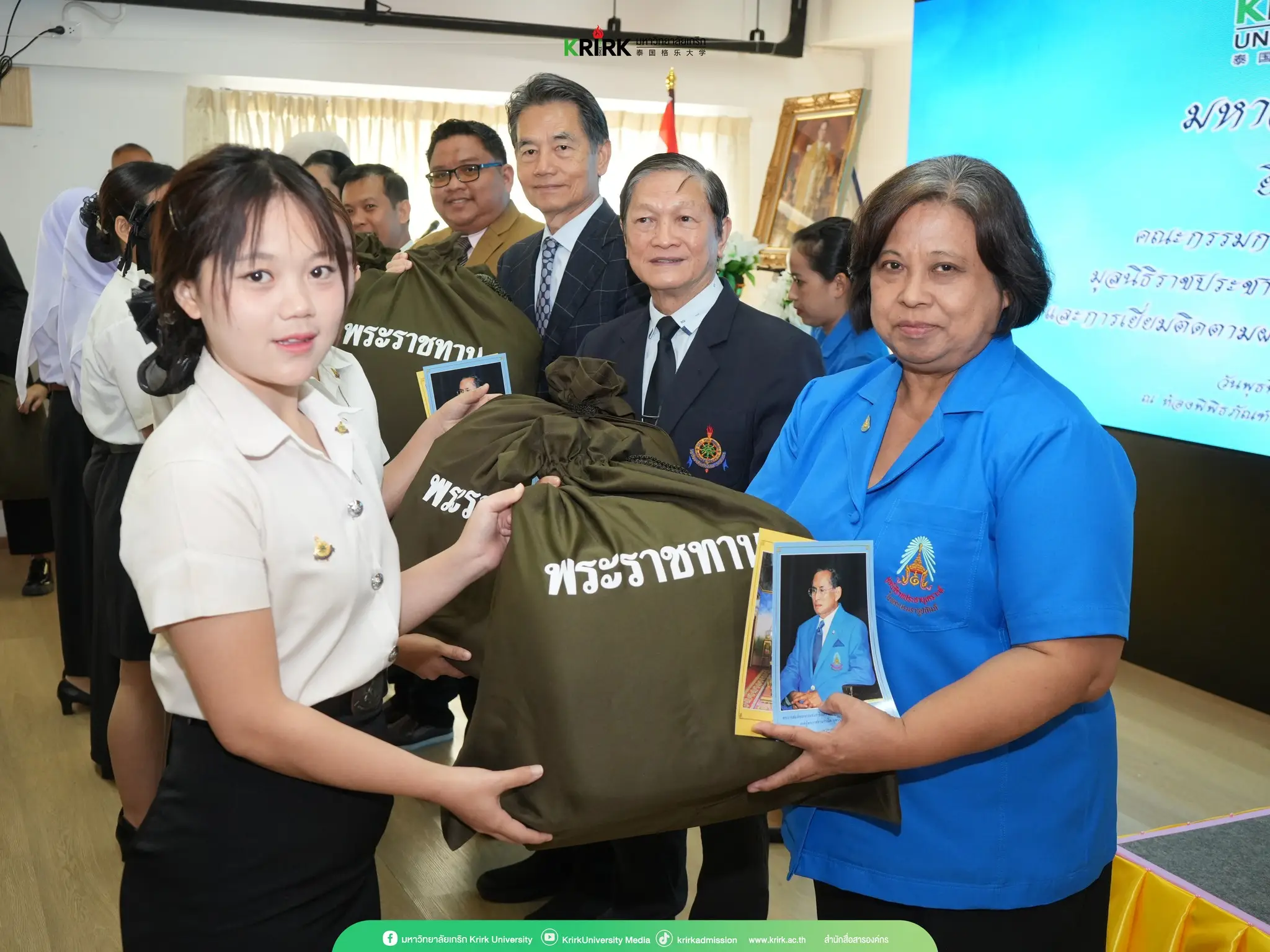 เมื่อวันที่ 6 พฤศจิกายน 2567 รศ. สุพัฒน์ ธีรเวชเจริญชัย รองอธิการบดีฝ่ายวิชาการ พร้อมด้วยคณาจารย์ และนักเรียนทุนฯ มหาวิทยาลัยเกริก ได้ทำการต้อนรับคณะกรรมการฝ่ายการสังคมสงเคราะห์ มูลนิธิราชประชานุเคราะห์ ในพระบรมราชูปถัมภ์ ในโอกาสที่ได้มาตรวจเยี่ยมติดตามผลการเรียน ของนักศึกษาทุนพระราชทานเพื่อการศึกษาสงเคราะห์ที่กำลังศึกษาอยู่ พร้อมพระราชทานอุปกรณ์การเรียนจากมูลนิธิฯ เพื่อสนองพระมหากรุณาธิคุณต่อพระบาทสมเด็จพระเจ้าอยู่หัว โดยมีนักศึกษาของมหาวิทยาลัยเกริกที่ได้รับทุน และอุปกรณ์การเรียนพระราชทาน เป็นจำนวน 7 คน