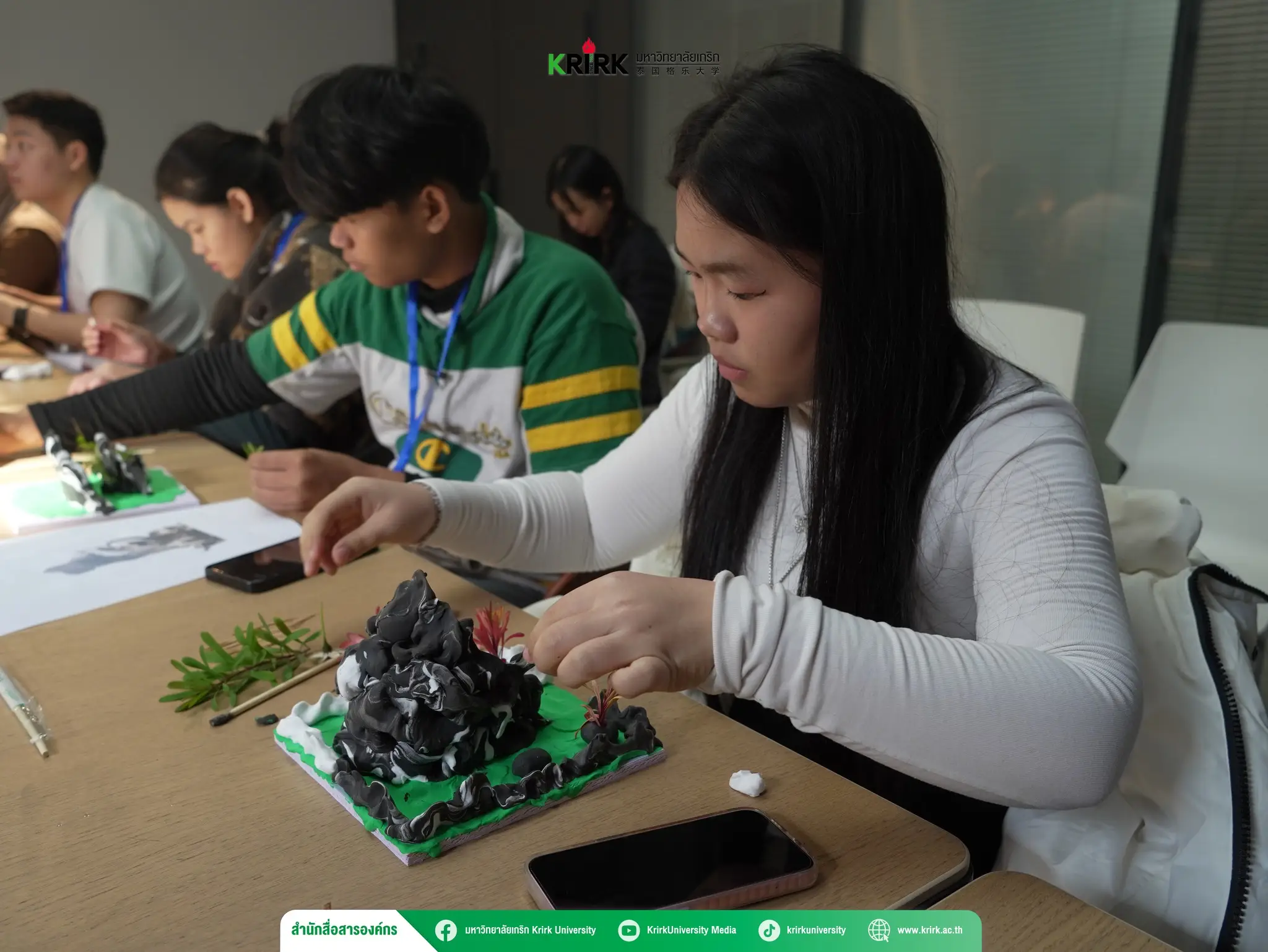 กิจกรรมปั้นดินเบา ได้รับความสนใจจากนักศึกษาเป็นอย่างมาก เพราะเปิดโอกาสให้ทุกคนได้ทดลองออกแบบสวนหินตามแบบฉบับโบราณ ซึ่งสะท้อนถึงความสงบและความสมดุลของธรรมชาติ โดยมีอาจารย์ผู้เชี่ยวชาญให้คำแนะนำอย่างใกล้ชิด