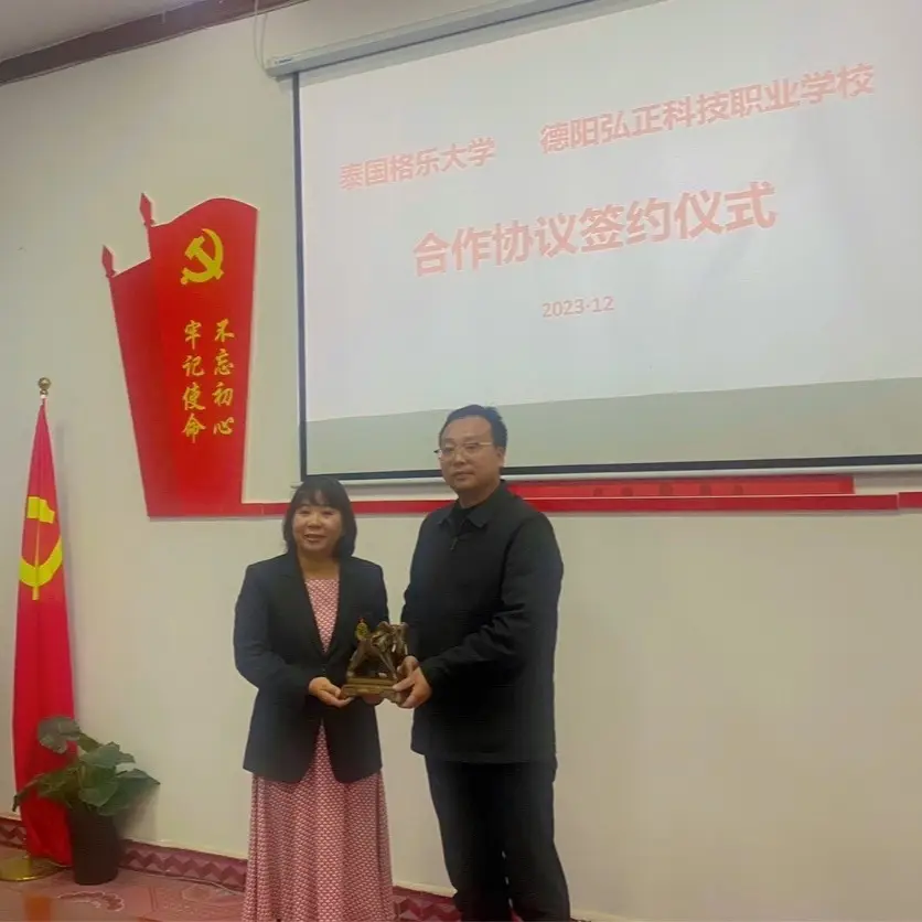 ผู้อำนวยการสำนักหอสมุด และผู้อำนวยการสำนักงานการศึกษาระหว่างประเทศมหาวิทยาลัยเกริกประจำนครเฉิงตู ได้เข้าร่วมพิธีลงนามความร่วมมือทางการศึกษาและวัฒนธรรม ระหว่างมหาวิทยาลัยเกริก,โรงเรียนนานาชาติจีน และ Deyang Hongzheng Science and Technology Vocational School เมืองเต๋อหยาง มณฑณเสฉวน ประเทศจีน