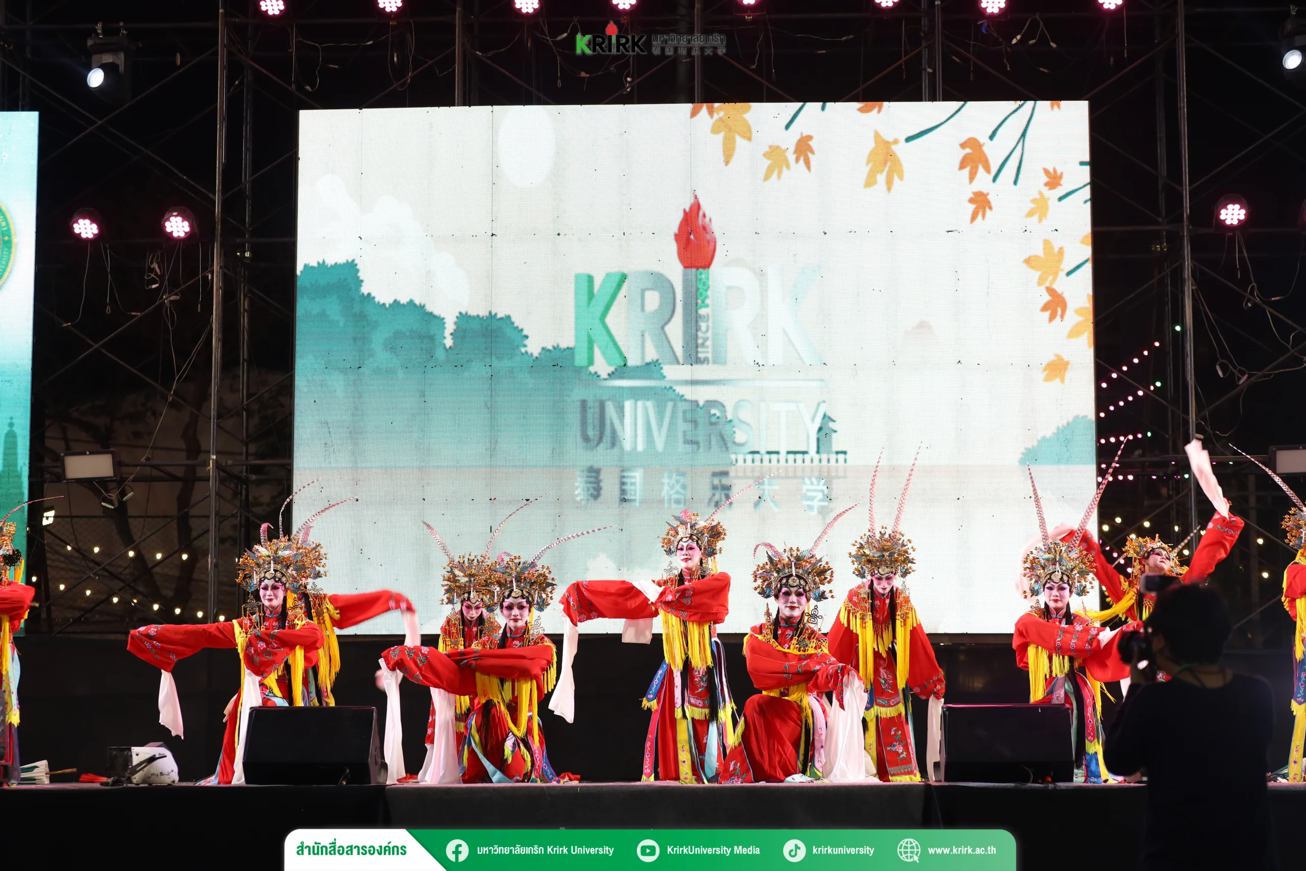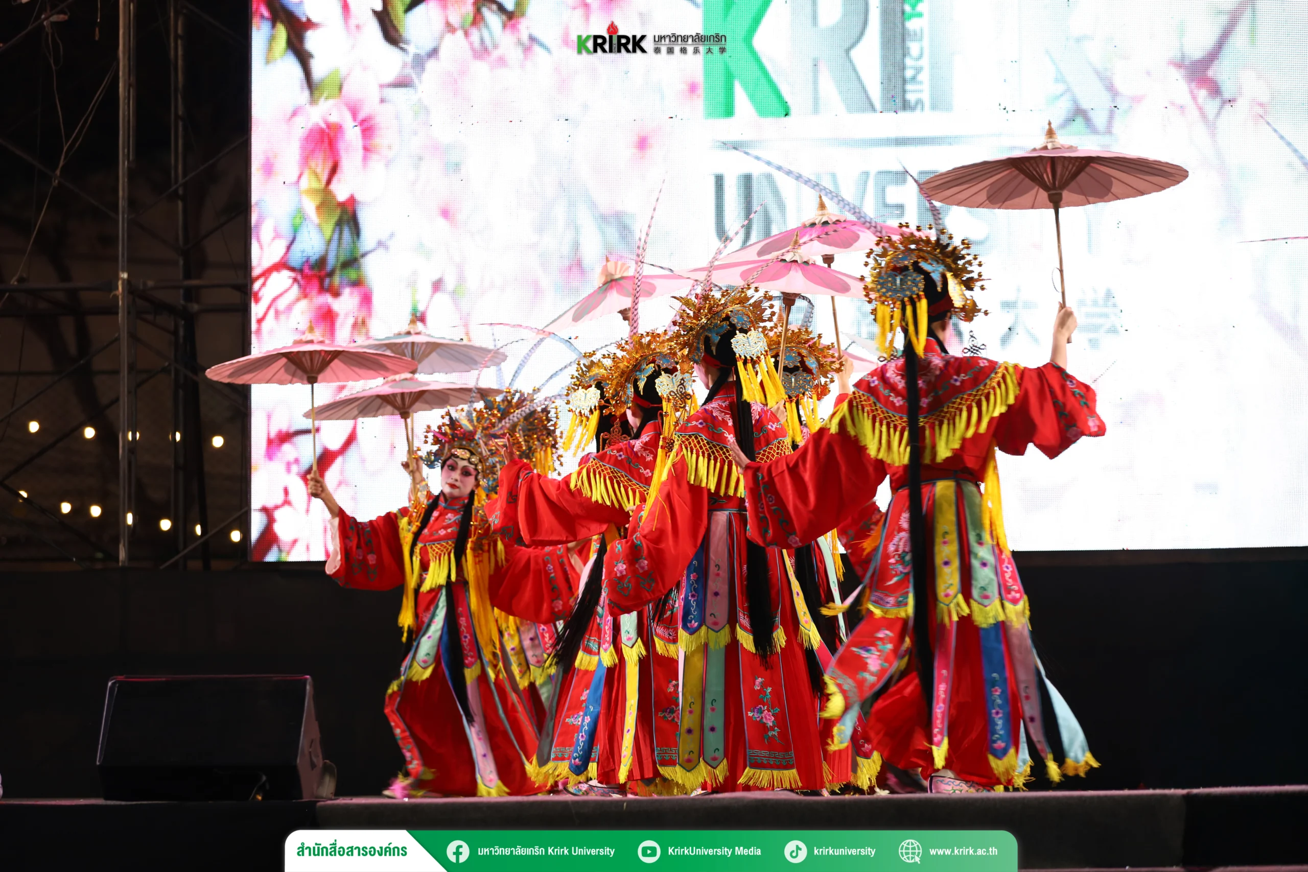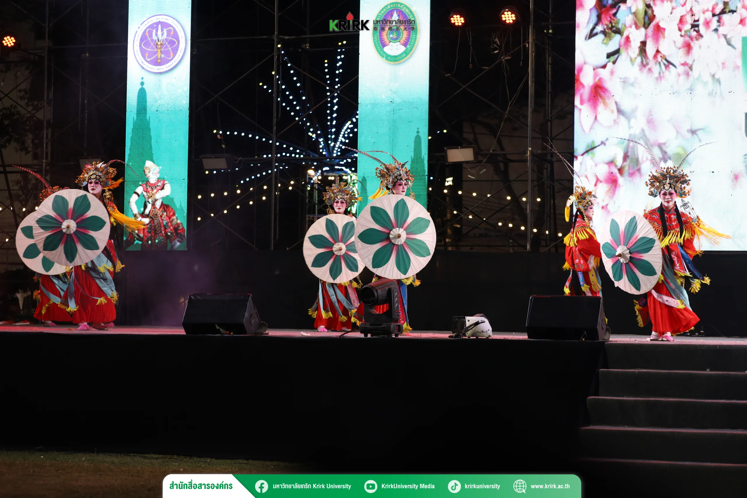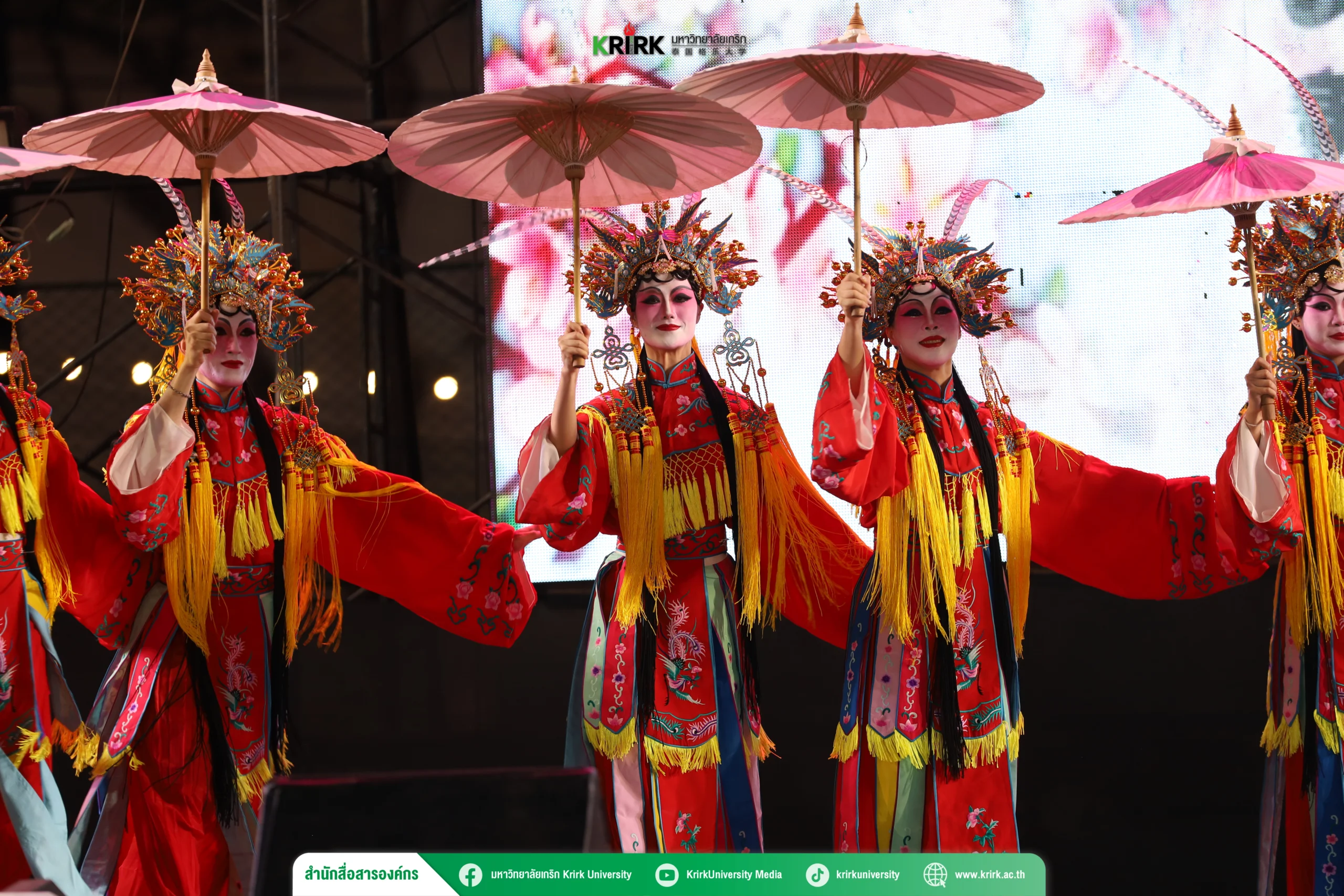 ในการนี้ มหาวิทยาลัยเกริก ได้นำเสนอการแสดงชุด “สี่ฤดูบุปผาบาน” ซึ่งเป็นผลงานการแสดงนาฏศิลป์งิ้ว ถ่ายทอดเรื่องราวผ่านภาพของการเปลี่ยนแปลงของทั้งสี่ฤดูกาล อันเปรียบเสมือนสัญลักษณ์แทนอารมณ์ ความรู้สึก และความรักของหญิงสาวในอดีต สะท้อนความงดงามของความรักที่อยู่เหนือกาลเวลา ผ่านการเดินทางของหัวใจที่ค่อย ๆ เบ่งบาน เปรียบประหนึ่งดอกไม้ที่ผลิบานในแต่ละฤดู
