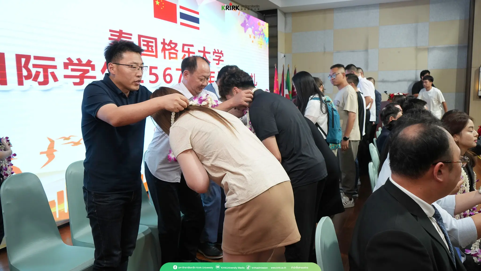 ภายในงานคณะผู้บริหาร ได้กล่าวต้อนรับนักศึกษาใหม่อย่างอบอุ่น พร้อมกับมอบพวงมาลัยดอกไม้เพื่อเป็นสัญลักษณ์แห่งการต้อนรับและความยินดีที่นักศึกษาได้เข้ามาเป็นส่วนหนึ่งของครอบครัวมหาวิทยาลัยเกริก