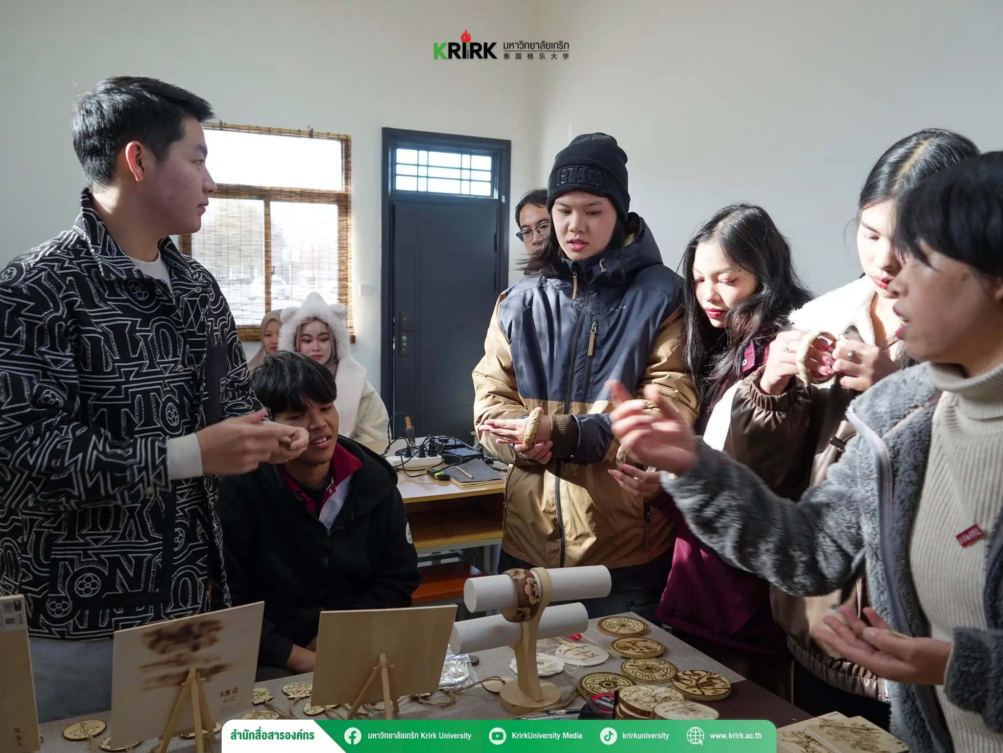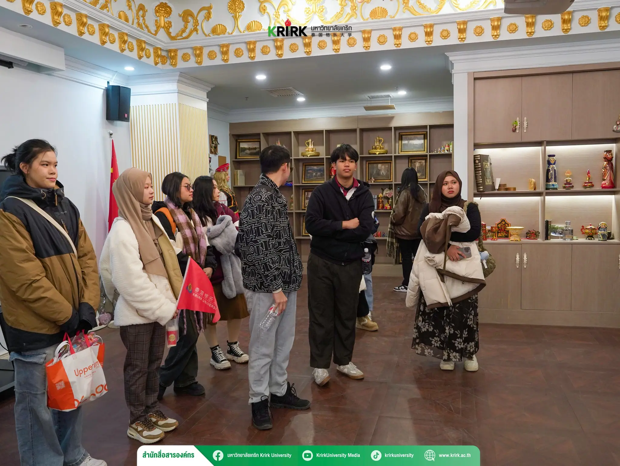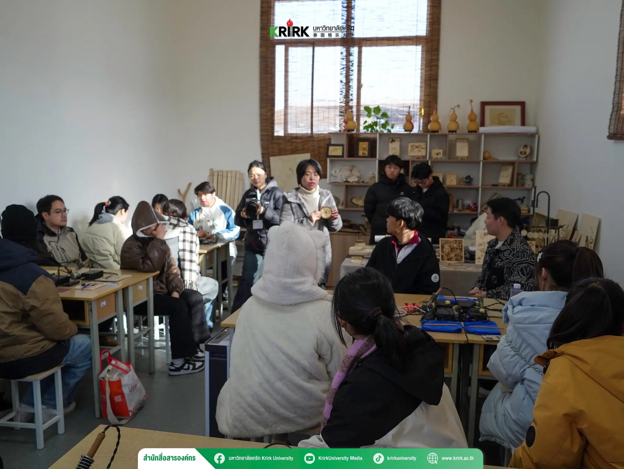 เมื่อวันที่ 14 ธันวาคม 2567 นักศึกษามหาวิทยาลัยเกริกได้มีโอกาสเยี่ยมชม พิพิธภัณฑ์ประวัติศาสตร์ xi’an fanyi university ซึ่งเป็นแหล่งเรียนรู้ที่บอกเล่าประวัติความเป็นมาของสถาบันการศึกษา พร้อมทั้งร่วมกิจกรรมภายในมหาวิทยาลัยที่เต็มไปด้วยความสนุกสนาน ตลอดการเยี่ยมชมนักศึกษาได้เดินชม ห้องเรียนนานาชาติ เพื่อเรียนรู้แนวการศึกษานานาชาติที่เชื่อมโยงกับหลักสูตรที่ทันสมัย ต่อด้วยการทำกิจกรรมเชิงวัฒนธรรมที่น่าสนใจ อาทิ การเรียนวาดพัดจีน ซึ่งเป็นการฝึกทักษะศิลปะบนพัดกระดาษ พร้อมรับความรู้เกี่ยวกับความหมายลวดลายบนพัด การแจ่งชุดจีนโบราณ (Hanfu) เพื่อสัมผัสเสน่ห์ความงดงามของการแต่งกายตามประเพณีดั้งเดิมของจีน การสร้างสรรค์ศิลปะบนไม้ ผ่านเทคนิคการเผาลวดลาย ซึ่งนักศึกษาได้ลองทำงานฝีมือที่ต้องอาศัยความประณีตและสมาธิ