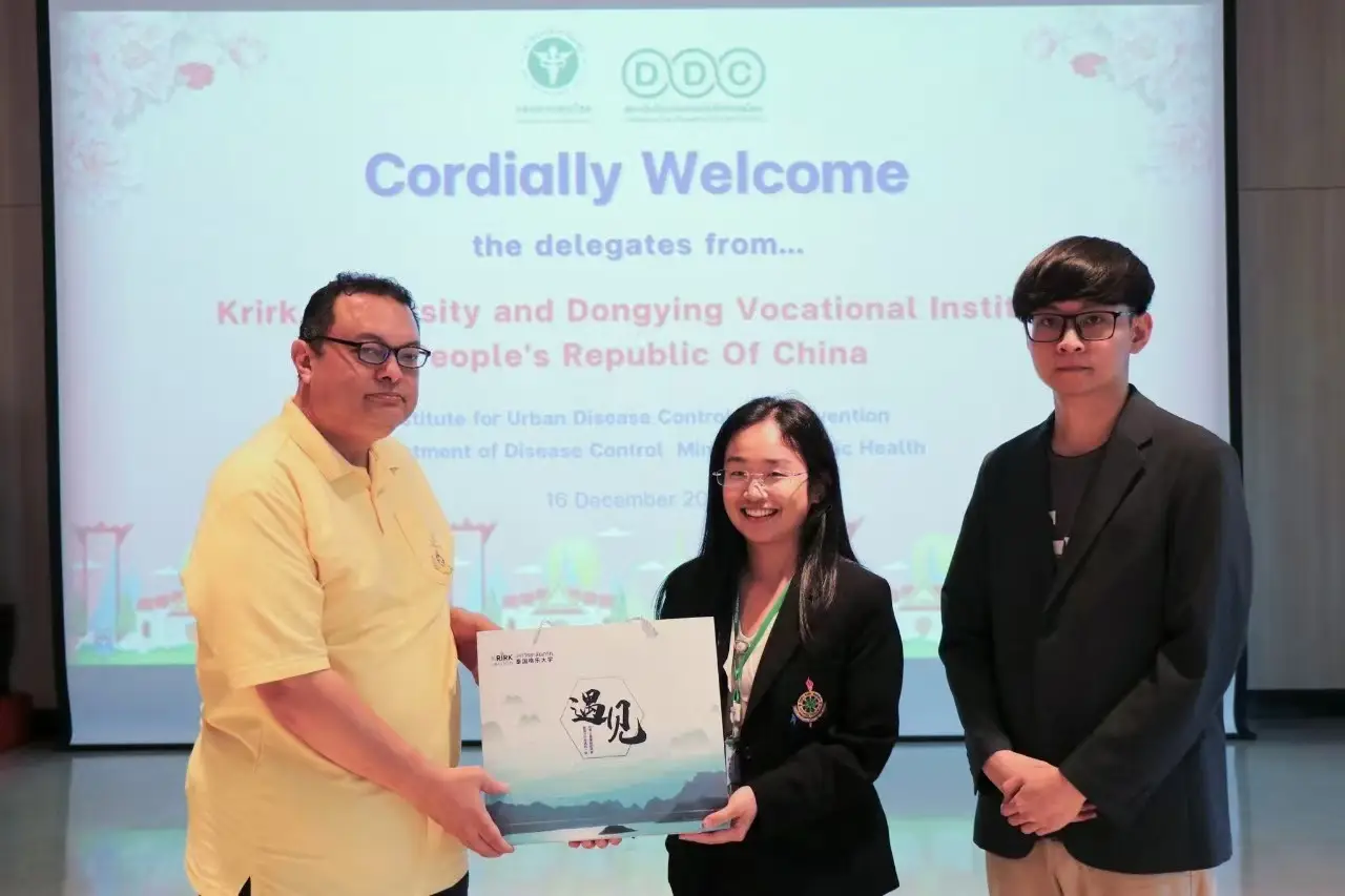 คณาจารย์สาขาวิชาสาธารณสุขศาสตร์ วิทยาลัยนานาชาติ มหาวิทยาลัยเกริก ได้นำคณะผู้แทนจากวิทยาลัยอาชีวศึกษาตงหยิง เข้าเยี่ยมชมและแลกเปลี่ยนทางวิชาการที่สถาบันป้องกันควบคุมโรคเขตเมือง กรมควบคุมโรค กระทรวงสาธารณสุข