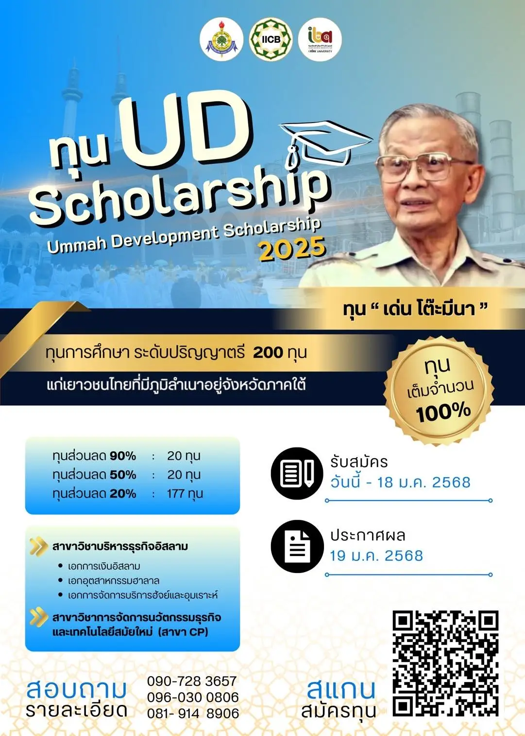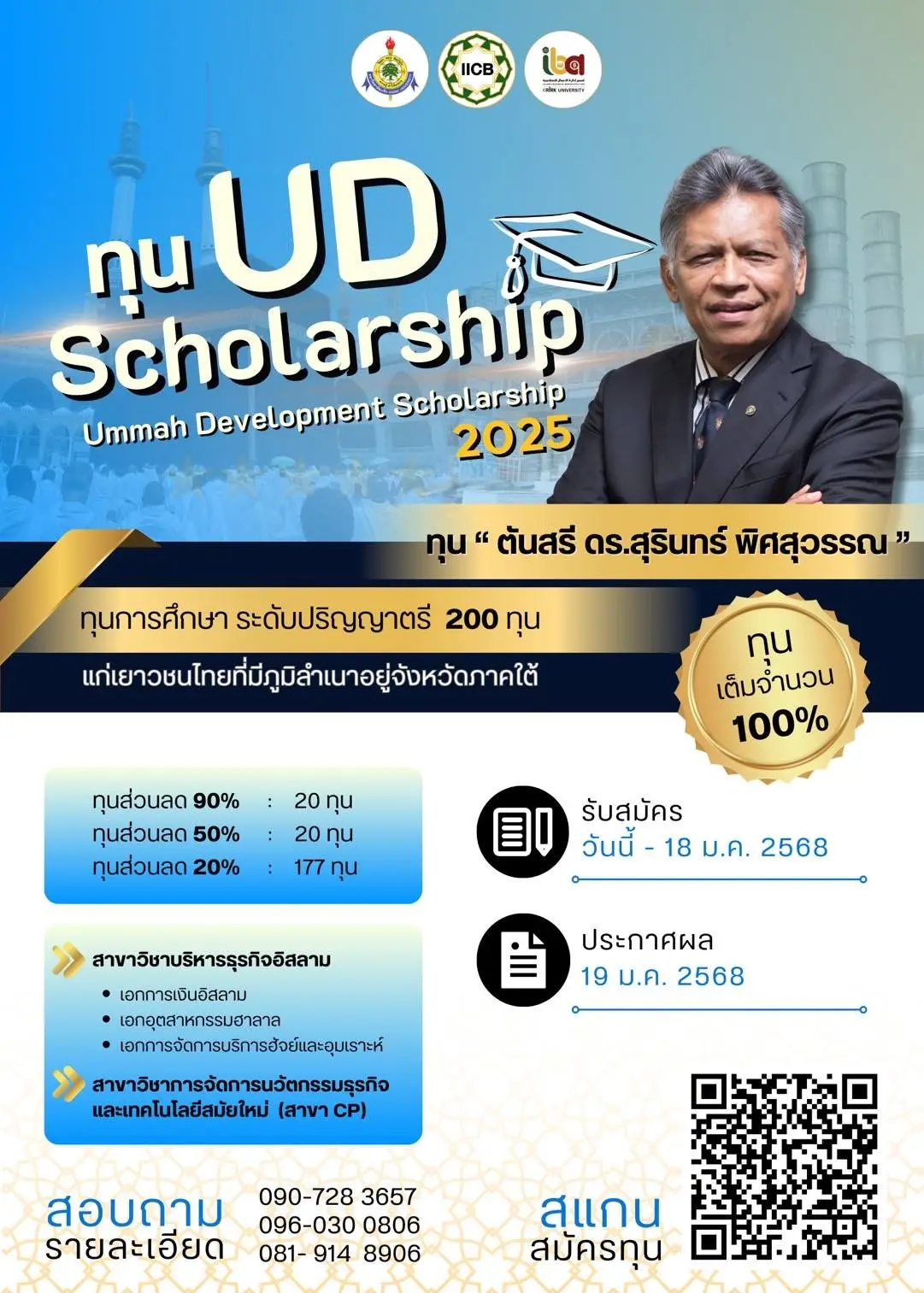 📣 ทุนการศึกษาดีๆ ต้อนรับปี 2568 🧑🎓ทุน UD Scholarship ปีที่ 2 จำนวน 200 ทุน✨💫 แก่เยาวชนไทยที่มีภูมิลำเนาในจังหวัดภาคใต้