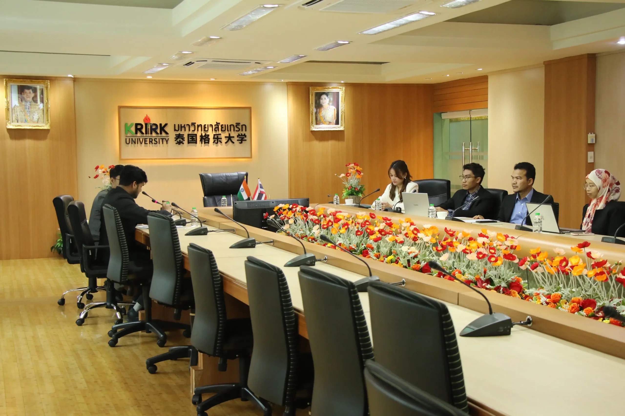 เมื่อวันพฤหัสบดีที่ 26 ธันวาคม 2567 เวลา 15.00 น. ณ ห้องประชุมสภามหาวิทยาลัยเกริก ผู้บริหารมหาวิทยาลัยเกริก นำโดย รศ. สุพัฒน์ ธีรเวชเจริญชัย รองอธิการบดีฝ่ายวิชาการ อาจารย์ ดร.ชนิดาภา หนูนวลวุฒิวงศ์ ผู้ช่วยประธานกรรมการบริหารฝ่ายการวิรัชกิจและการพัฒนาการศึกษานานาชาติและผู้อำนวยการสำนักการต่างประเทศ พร้อมด้วยบุคลากรและเจ้าหน้าที่ ได้เข้าร่วมประชุมและลงนามในบันทึกความเข้าใจ (MOU) ผ่านระบบออนไลน์ ร่วมกับมหาวิทยาลัย Jerusalem College of Engineering (JCE) ประเทศอินเดีย