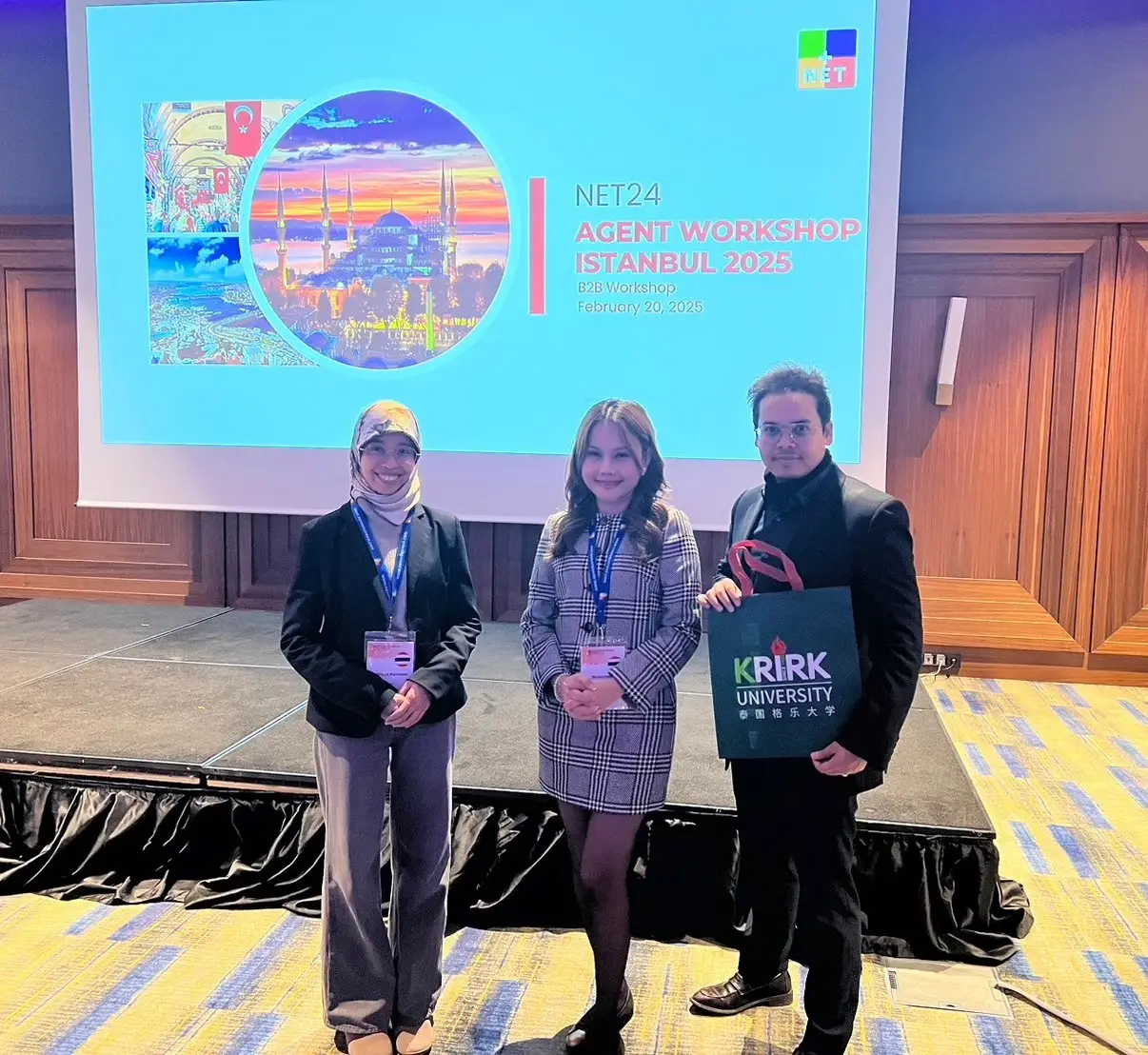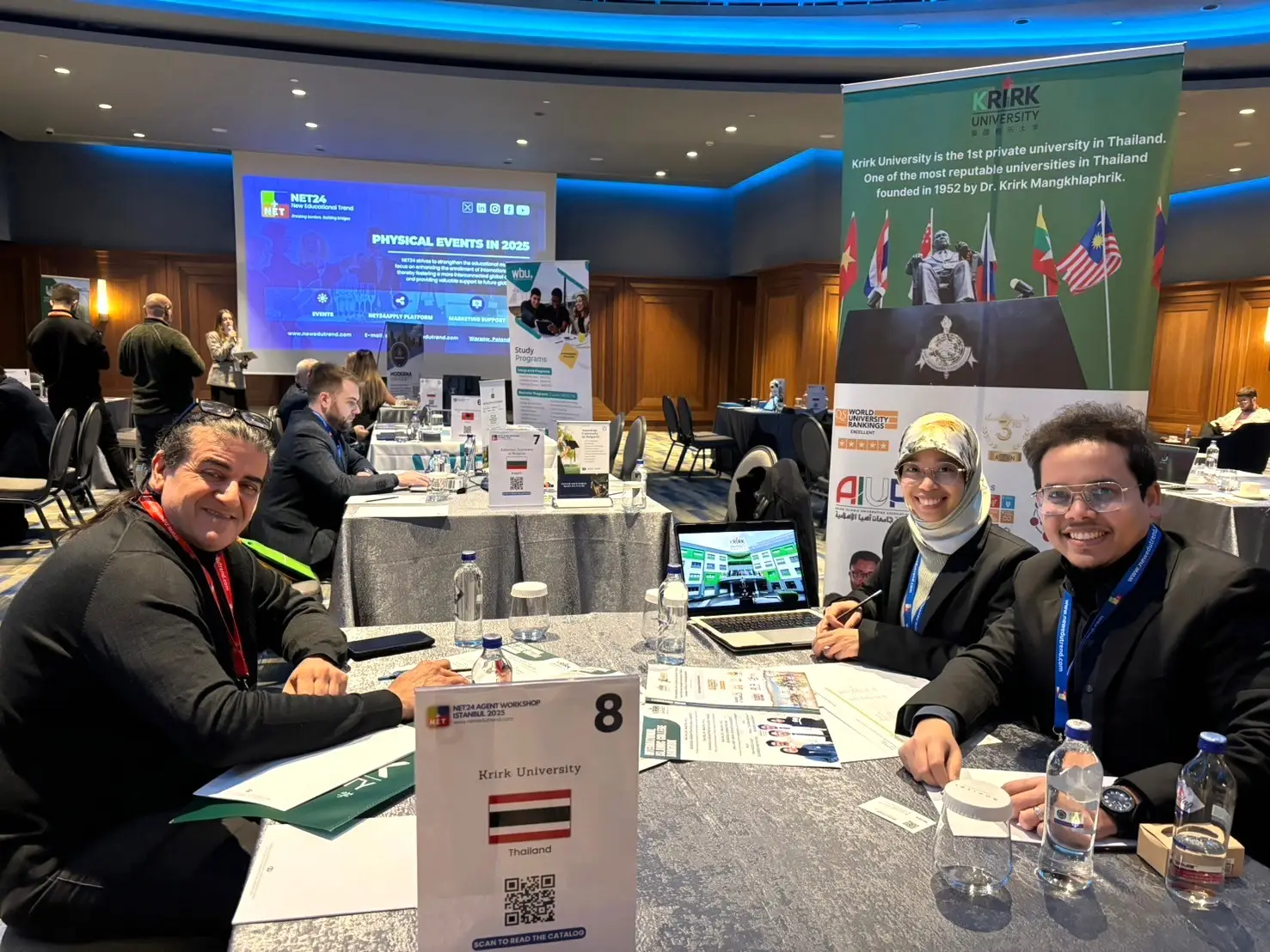 เมื่อวันที่ 20 กุมภาพันธ์ พ.ศ. 2568 ศาสตราจารย์ ดร.จรัญ มะลูลีม รองอธิการบดีฝ่ายการต่างประเทศ มหาวิทยาลัยเกริก มอบหมายให้ ดร.ชนิดาภา หนูนวลวุฒิวงศ์ ผู้ช่วยประธานกรรมการบริหาร ฝ่ายการวิรัชกิจและการพัฒนาการศึกษานานาชาติและผู้อำนวยการสำนักการต่างประเทศ พร้อมด้วยนางสาวนัศรียา กรีมี ผู้จัดการสำนักการต่างประเทศและนายมูฮำหมัด อัสซูรีฮี อัลฮารบี ผู้จัดการฝ่ายการตลาดประเทศมุสลิม มหาวิทยาลัยเกริก เข้าร่วมงาน NET24 AGENT WORKSHOP ISTANBUL 2025 ซึ่งจัดขึ้น ณ เมืองอิสตันบูล ประเทศตุรกี งานนี้เป็นเวทีสำคัญที่รวบรวมสถาบันการศึกษาจากนานาประเทศและตัวแทนแนะแนวศึกษาต่อจากทั่วโลก เพื่อส่งเสริมความร่วมมือทางการศึกษาและขยายโอกาสให้นักศึกษานานาชาติ