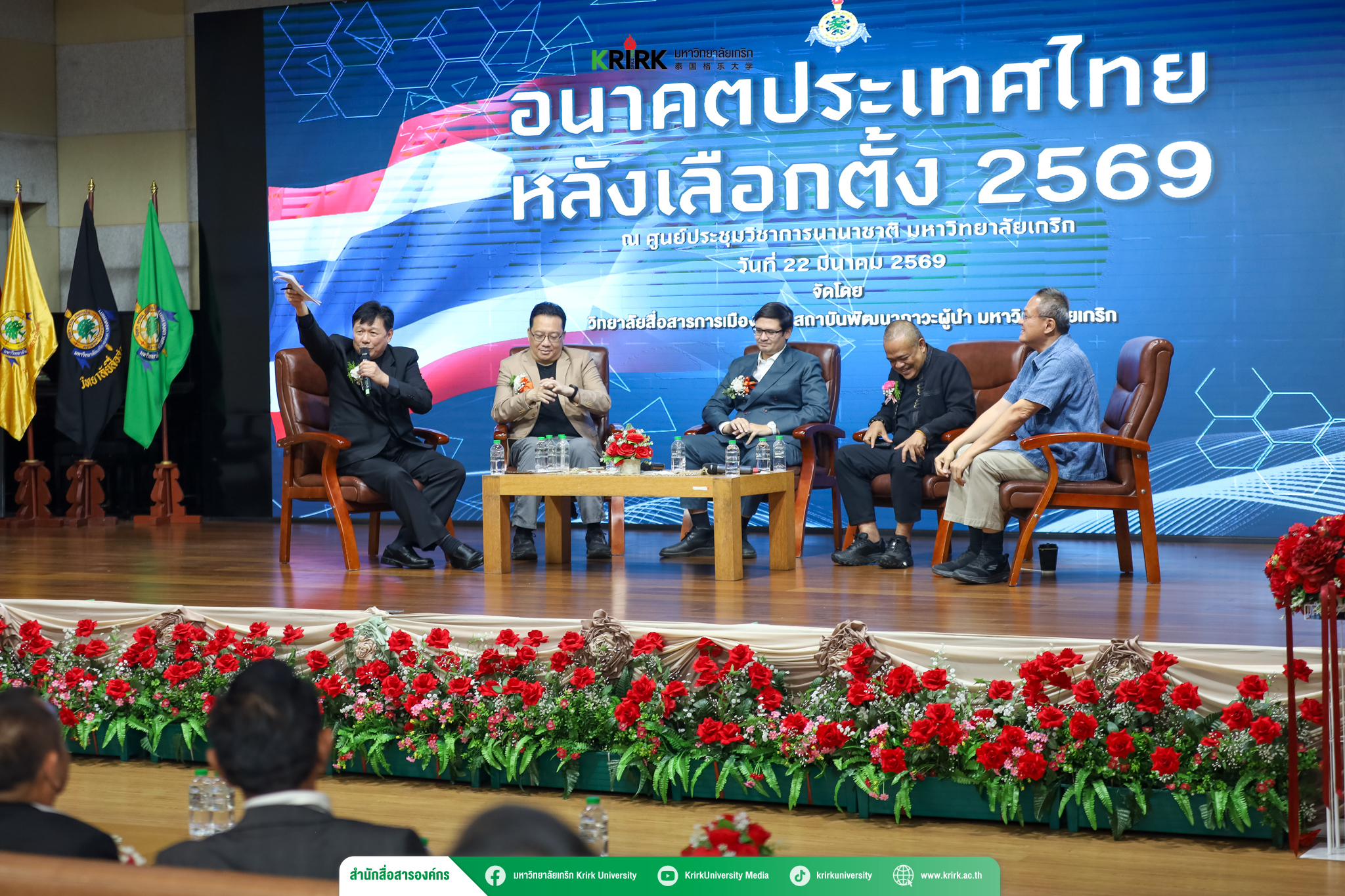 เมื่อวันอาทิตย์ที่ 22 มีนาคม 2569 ที่ผ่านมา วิทยาลัยสื่อสารการเมือง มหาวิทยาลัยเกริก ประสบความสำเร็จในการจัดโครงการจัดงานเสวนาทางวิชาการ ในหัวข้อที่กำลังอยู่ในความสนใจของสังคม “เรื่อง อนาคตประเทศไทยหลังเลือกตั้งปี 2569” โดยงานนี้จัดขึ้น ณ ศูนย์ประชุมวิชาการนานาชาติ มหาวิทยาลัยเกริก