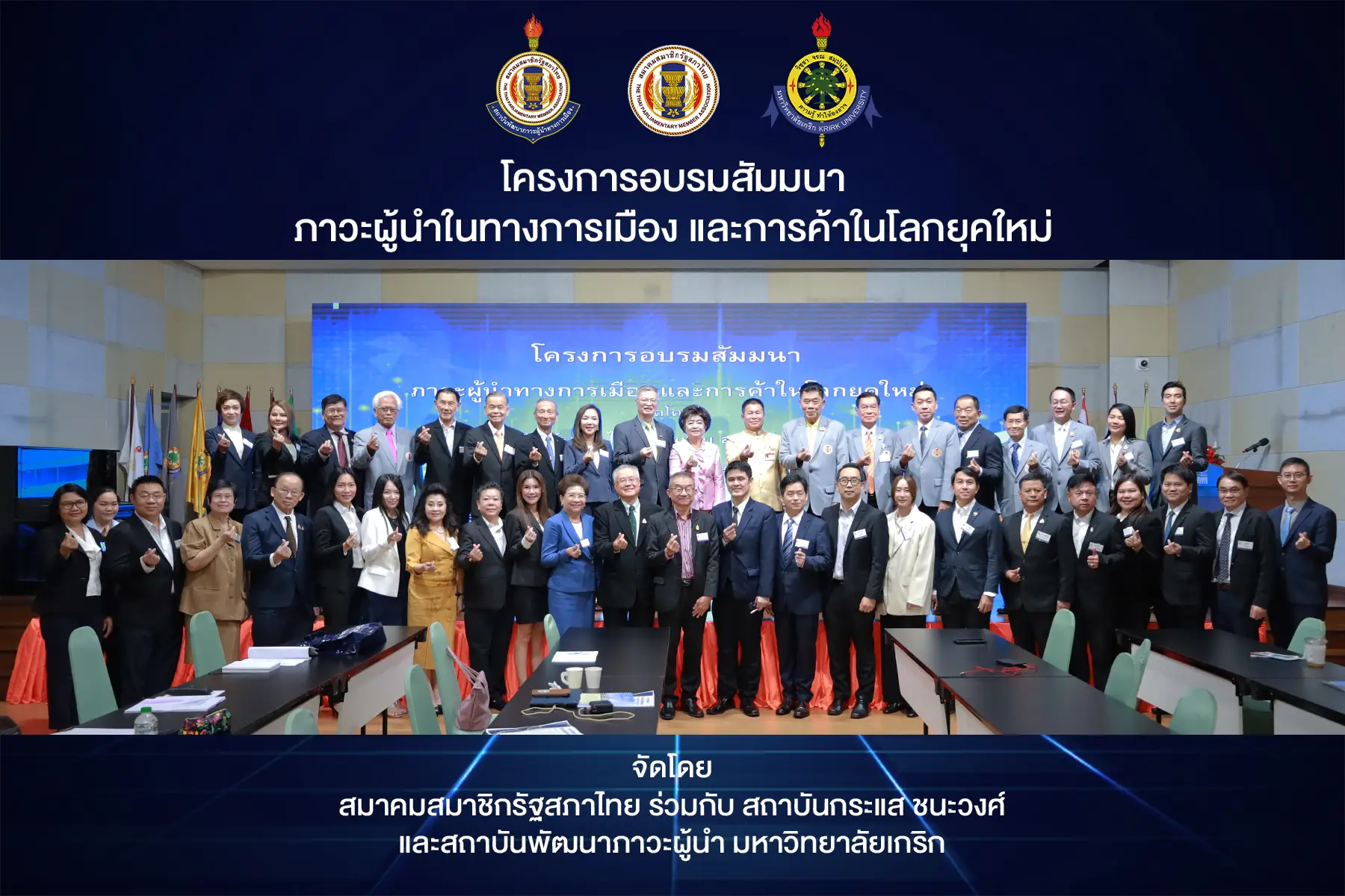 สถาบันการพัฒนาภาวะผู้นำมหาวิทยาลัยเกริก ร่วมกับสมาคมสมาชิกรัฐสภาไทยและสถาบันกระแส ชนะวงศ์ ได้จัดโครงการอบรมสัมมนาภาวะผู้นำในทางการเมืองและการค้าในโลกยุคใหม่