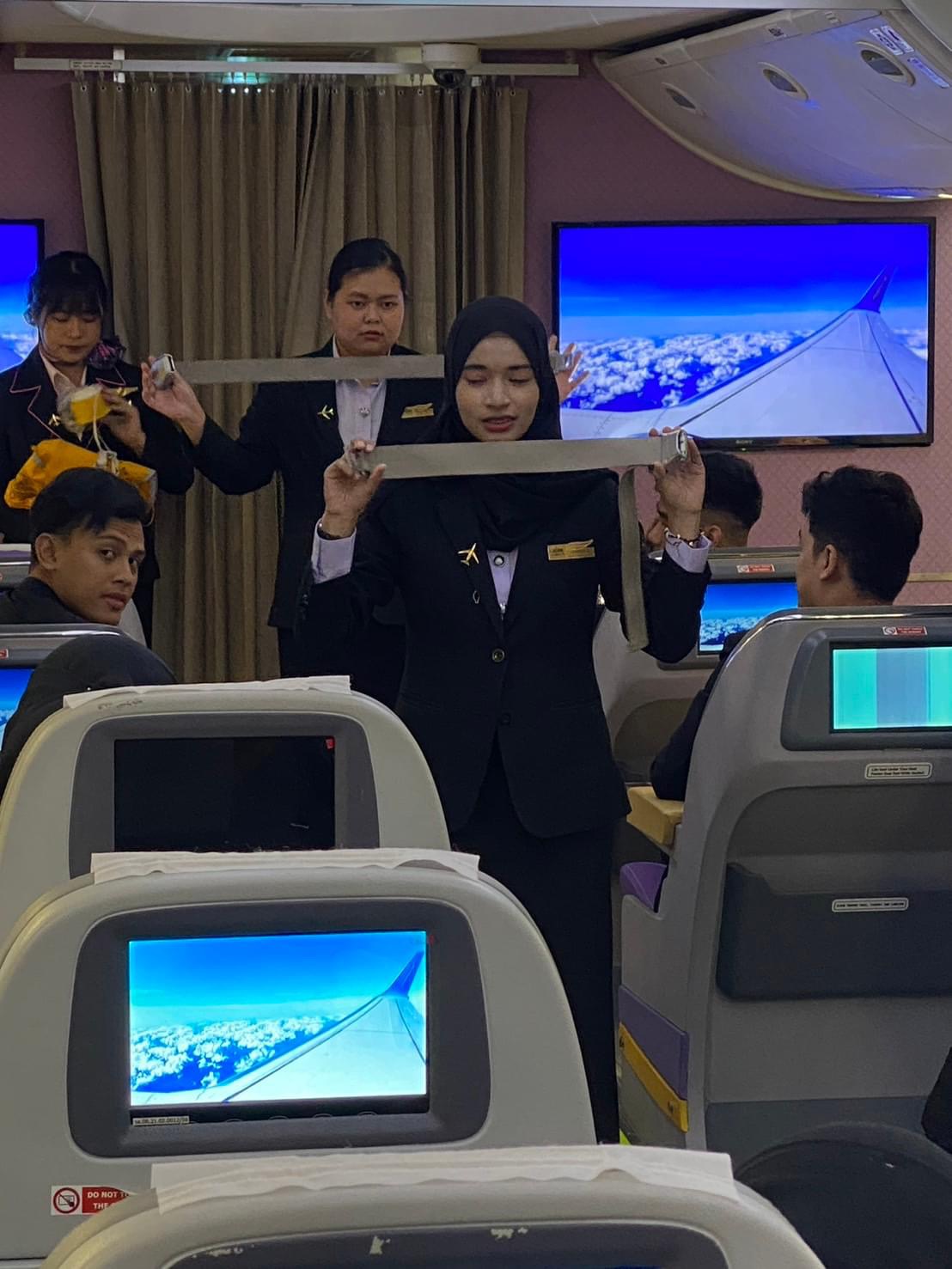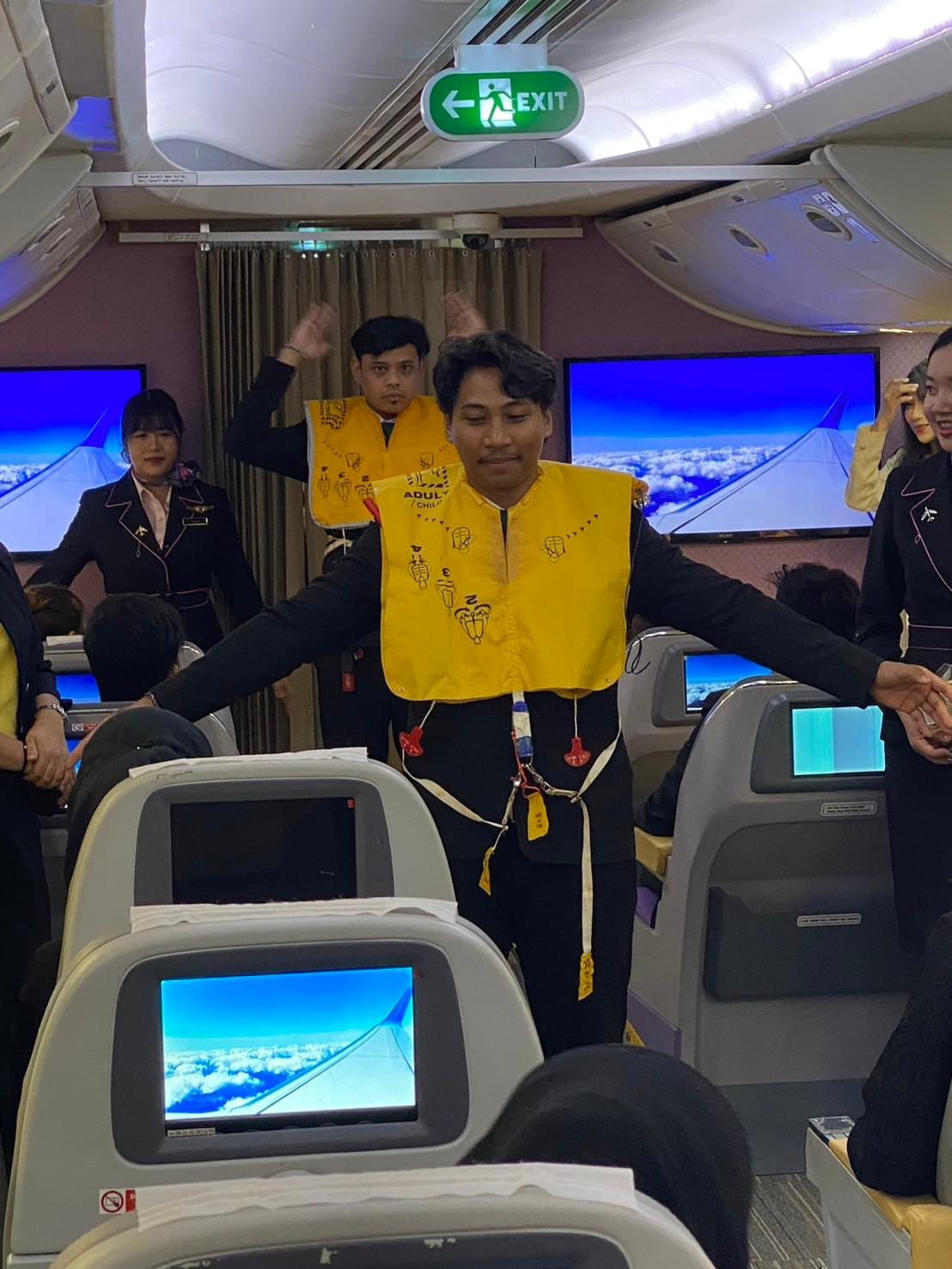 📣นักศึกษาชั้นปีที่ 4 ทุกคนได้เรียนรู้ถึงทฤษฎีเบื้องต้นในเรื่องการให้บริการบนเครื่องบินและการดูแลความปลอดภัยของผู้โดยสาร ร่วมถึงได้มีการฝึกฝนทดลองการปฏิบัติงานบริการบนเครื่องบิน ณ ห้องโดยสารจำลอง ( Cabin Mock Up ) ของทางมหาวิทยาลัยเกริก แต่อย่างไรก็ตามเพื่อเกิดความเข้าใจและมองเห็นภาพการทำงานของพนักงานต้อนรับบนเครื่องบินได้ชัดเจนยิ่งขึ้น จึงได้จัดทำโครงการ“ฝึกอบรมการบริการบนเครื่องบิน และ Emergency Drill”🛩️