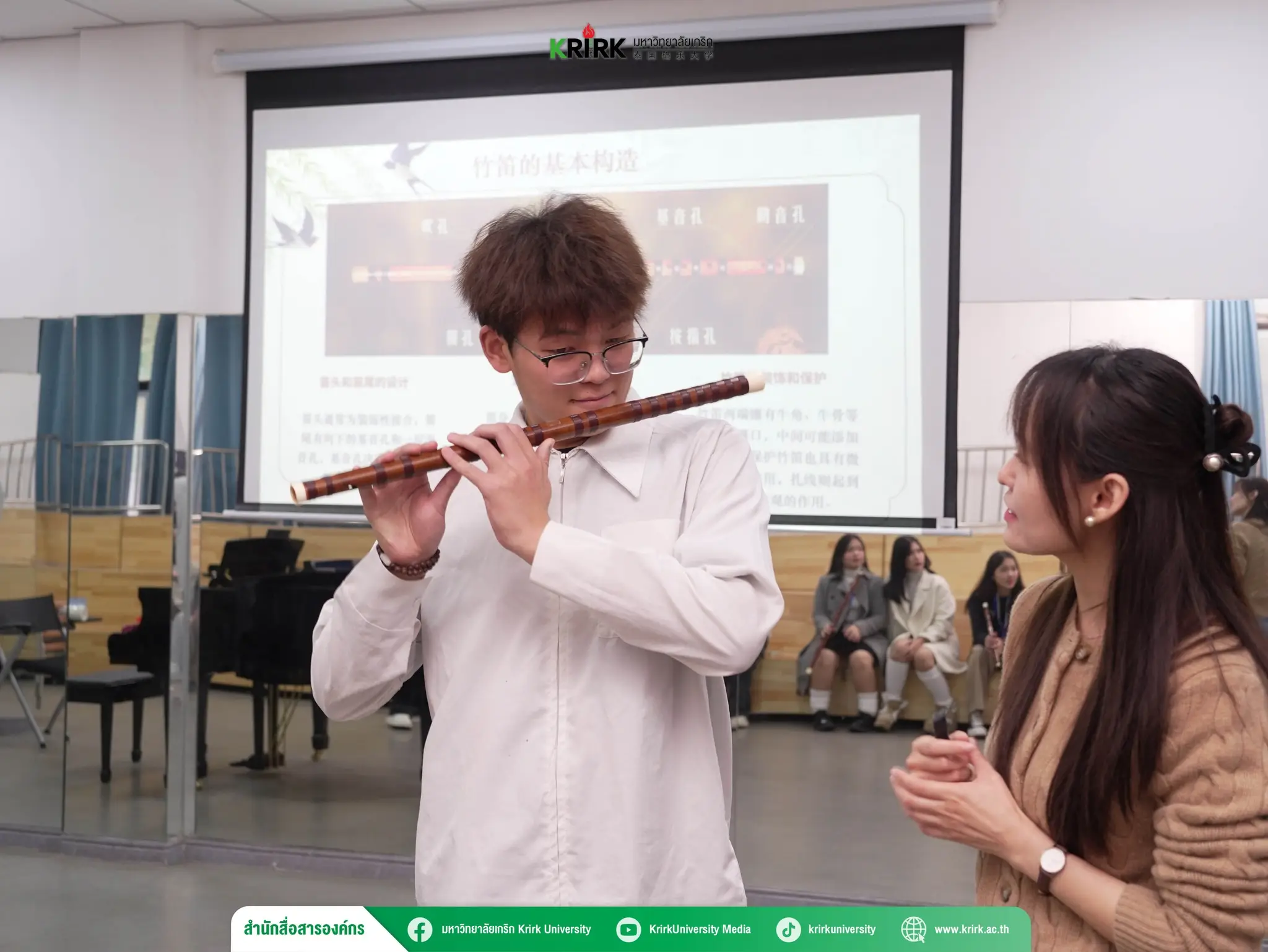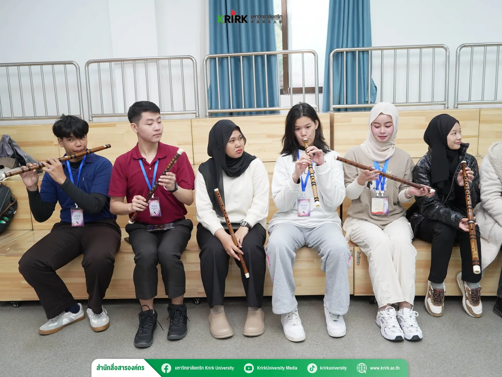 ในช่วงเช้ากลุ่มนักศึกษาแลกเปลี่ยนได้ร่วมกิจกรรมเรียนรู้และสัมผัสวัฒนธรรมจีน นักศึกษาได้เรียนเป่าขลุ่ยไม้ไผ่จีน ซึ่งเป็นเครื่องดนตรีที่มีเอกลักษณ์และเปี่ยมไปด้วยประวัติศาสตร์ พร้อมฝึกฝนการร้องเพลงร่วมกับนักศึกษาจีนที่มาร่วมเป่าขลุย และเล่นเปียโนไปด้วยกัน