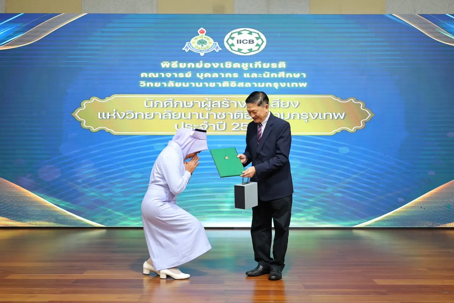 ในโอกาสที่บุคลากร และนักศึกษาของวิทยาลัยนานาชาติอิสลามกรุงเทพ ได้สร้างชื่อเสียง และคุณประโยชน์ต่อสังคม โดยการที่ได้รับบทบาทหน้าที่ที่สำคัญและหลากหลายด้านอันจะเป็นประโยชน์ต่อการพัฒนาประเทศ และคุณภาพทางการศึกษามหาวิทยาลัยเกริก อีกทั้งยังสร้างเครือข่ายความร่วมมือแก่มหาวิทยาลัยฯในวงกว้างแล้วนั้น วิทยาลัยฯ จึงได้จัดงาน “พิธียกย่องเชิดชูเกียรติบุคลากร และนักศึกวิทยาลัยฯ และ พิธีลงนามความความร่วมมือ MOU” เมื่อวันอังคารที่ 20 สิงหาคม พศ.2567 ที่ผ่านมา โดยงานนี้ ได้รับเกียรติจาก รศ.สุพัฒน์ ธีรเวชเจริญชัย รองอธิการบดีฝ่ายวิชาการ เป็นประธานเปิดงาน และมอบรางวัลเชิดชูเกียรติแก่บุคลากร และนักศึกษาวิทยาลัยที่ได้สร้างคุณงามความดี นำโดย ศ.ดร.จรัญ มะลูลีม รองอธิการบดีฝ่ายการต่างประเทศ และคณบดีวิทยาลัยนานาชาติอิสลามกรุงเทพ ได้รับการแต่งตั้งจากนายกรัฐมนตรีให้ดำรงตำแหน่ง กรรมการอุตสาหกรรมฮาลาลแห่งชาติ และได้รับการแต่งตั้งจากท่านอรุณ บุญชม จุฬาราชมนตรี ให้ดำรงตำแหน่ง ที่ปรึกษาจุฬาราชมนตรี