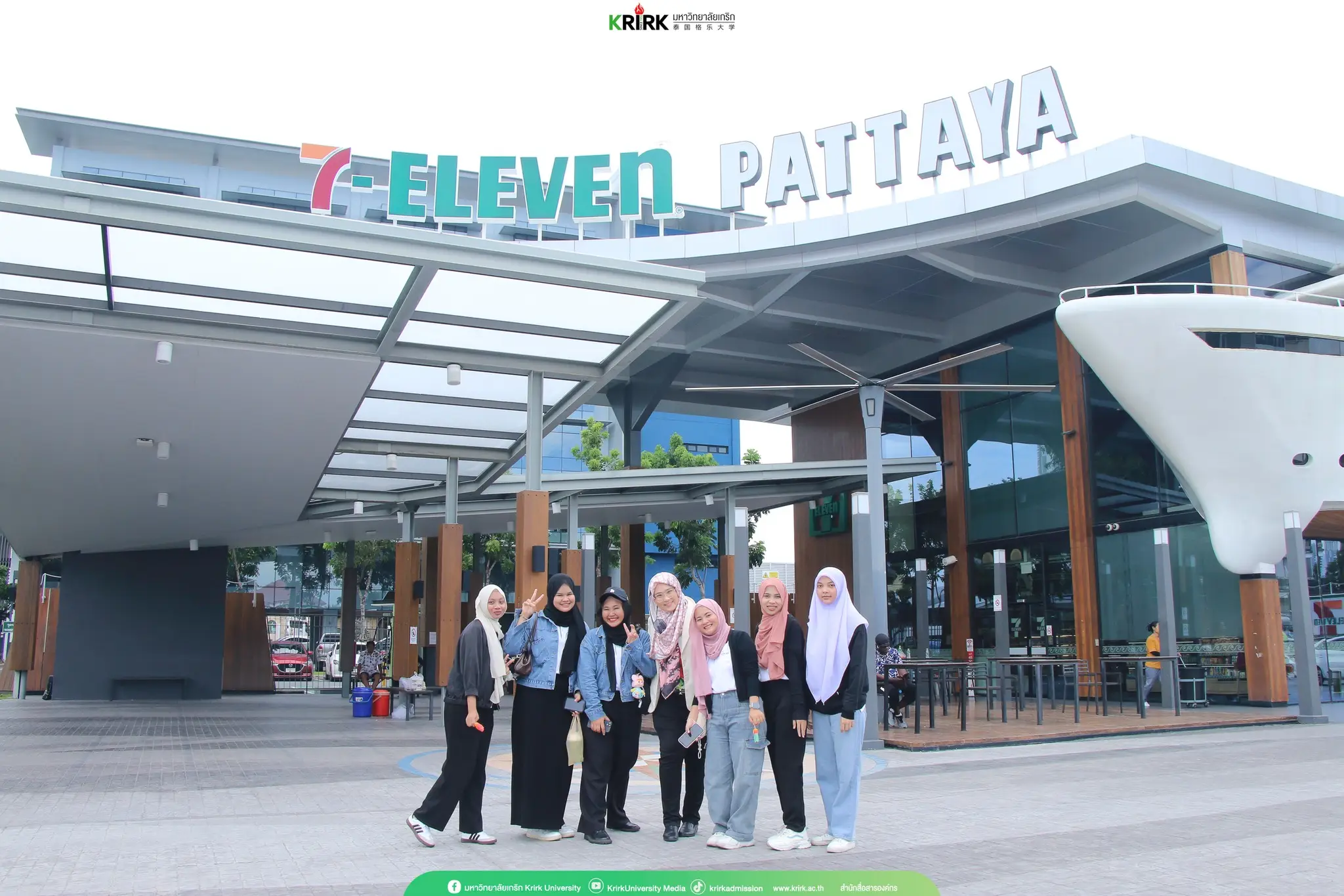 และในช่วงบ่ายได้เข้าเยี่ยมชมกิจการ 7-Eleven สาขา 10000 ธาราพัทยา จ.ชลบุรี 7-Eleven สาขา ที่มีรูปทรงไม่เหมือนวสาขาใด ซึ่งรูปแบบของตัวหน้าร้านเหมือนเรือที่ถูกตกเเต่งเเบบล้ำสมัย สาขานี้มีการใช้ นวัตกรรมใหม่ๆหลายอย่าง เช่น การสร้างภาพ 3 มิติจากไฟ LED การฉายแสงทำน้ำอัดลมวุ้น หุ่นยนต์ที่มีปฏิกิริยาตอบโต้ได้ มี Digital Aquarium และ สื่อ Interactive มากมายในร้าน ที่สำคัญสาขานี้ใช้นวตกรรมที่เป็นมิตรต่อสิ่งแวดล้อม มีห้องน้ำในตัว แยกชายหญิง สะอาด สวยงาม และมี EV Charger สำหรับชาร์จรถไฟฟ้าฯลฯ อีกทั้งสาขานี้จะมีสองชั้น ชั้นบนเป็นที่นั่งสำหรับรับประทานอาหารอีกด้วย ทำให้นักศึกษาได้เรียนรู้นวัตกรรมใหม่ๆจาก7-Eleven สาขานี้เป็นอย่างมาก