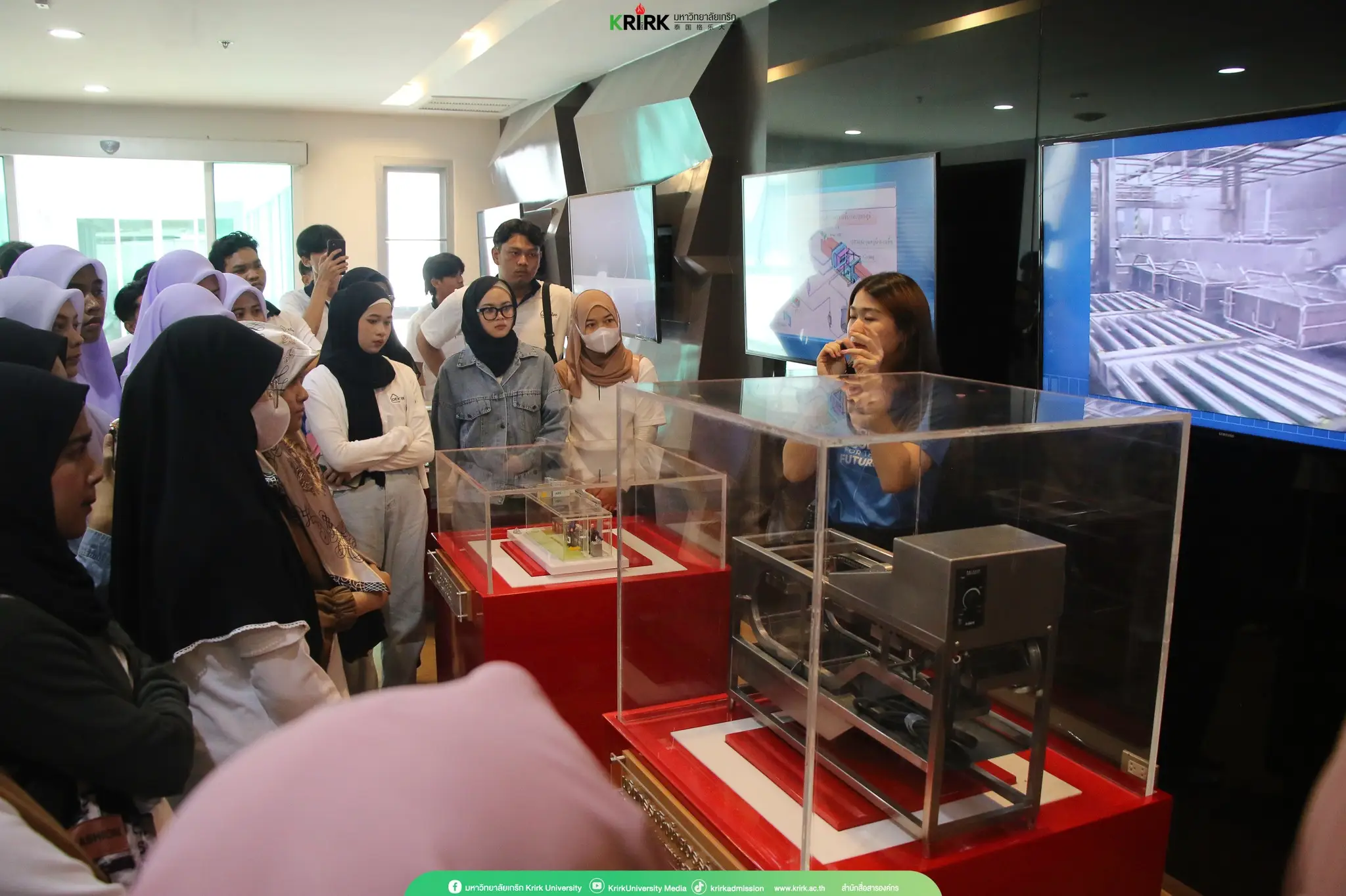 เมื่อวันที่ 18 และ 25 กันยายนที่ผ่านมา อาจารย์อนุสรา มู่ฮัมหมัด รักษาการหัวหน้าสาขาการจัดการนวัตกรรมธุรกิจและเทคโนโลยีสมัยใหม่ คณะบริหารธุรกิจ มหาวิทยาลัยเกริก พร้อมด้วยอาจารย์ศศิวัฒน์ ตันติบุญยานนท์ อาจารย์ณรงค์ศักดิ์ ล้ำเลิศ อาจารย์ประจำคณะบริหารธุรกิจ และนายอรรครัตน์ มะหะหมัด เจ้าหน้าที่ประจำคณะบริหารธุรกิจ นำนักศึกษาชั้นปีที่ 1-4 จำนวน 80 คน เข้าศึกษาดูงานที่ CPRAM Innovation Center บริษัท ซีพีแรม จำกัด ซึ่งได้รับการต้อนรับเป็นอย่างดี พร้อมทั้งได้รับฟังการบรรยายการบริหารจัดการภาพรวมองค์กร และเยี่ยมชมนวัตกรรมด้านต่างๆ ของทางบริษัท ซีพีแรม จำกัด ที่ได้ขับเคลื่อนด้วย Innovation และ Technology Culture นวัตกรรมการผลิตแบบอัตโนมัติ และเทคโนโลยีอื่น ๆ ที่เกี่ยวข้อง รวมทั้งได้ศึกษาเรียนรู้เกี่ยวกับเทคโนโลยีและนวัตกรรมในด้าน Robot and Automation โดยประกอบไปด้วย Food Innovation Center + SMART Factory + SMART Office ครบวงจรและทันสมัยระดับโลก รวมถึงสัมผัสนวัตกรรมกระบวนการผลิตอาหารพร้อมรับประทาน และผลิตภัณฑ์คุณภาพที่ทันสมัย