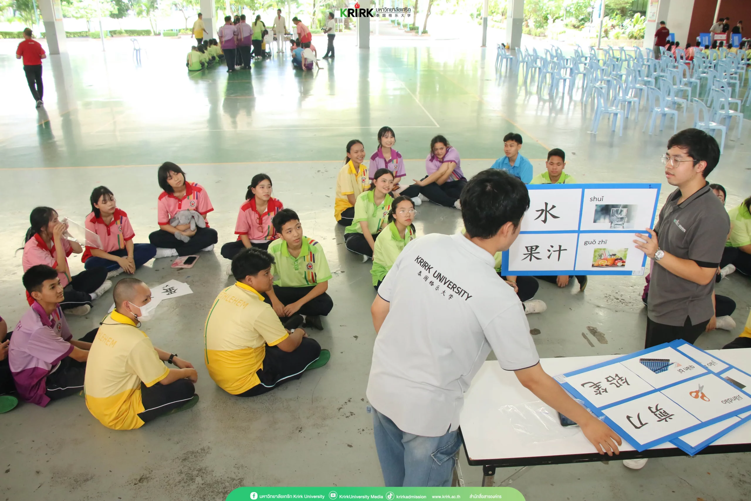 เมื่อวันที่27สิงหาคม2567 อาจารย์ยิ่งศักดิ์ สิทธิยากรณ์ ผู้ช่วยรองอธิการบดีฝ่ายกิจการพิเศษ และรักษาการหัวหน้าศูนย์แนะแนวและงานความร่วมมือทางวิชาการการศึกษาพร้อมทีมงานแนะแนวกรุงเทพและปริมณฑล คณาจารย์และนักศึกษา วิทยาลัยนานาชาติภาษาและวัฒนธรรมจีน โดยการนำของ Mr.Wei Jie อาจารย์ประจำวิทยาลัยนานาชาติภาษาและวัฒนธรรมจีนมหาวิทยาลัยเกริก จัดกิจกรรมค่ายภาษาและวัฒนธรรมจีน ให้แก่นักเรียนระดับชั้นม.6 โรงเรียนพระหฤทัยดอนเมือง ซึ่งเป็นกิจกรรมเพื่อพัฒนาศักยภาพของนักเรียน เป็นแนวทางในการส่งเสริมการศึกษาต่อทางด้านภาษาจีนและแนะแนวการศึกษาต่อให้กับมหาวิทยาลัยเกริกเป็นที่รู้จักอย่างกว้างขวาง ด้านการศึกษาภาษาจีนในรูปแบบกิจกรรมฐานการเรียนรู้