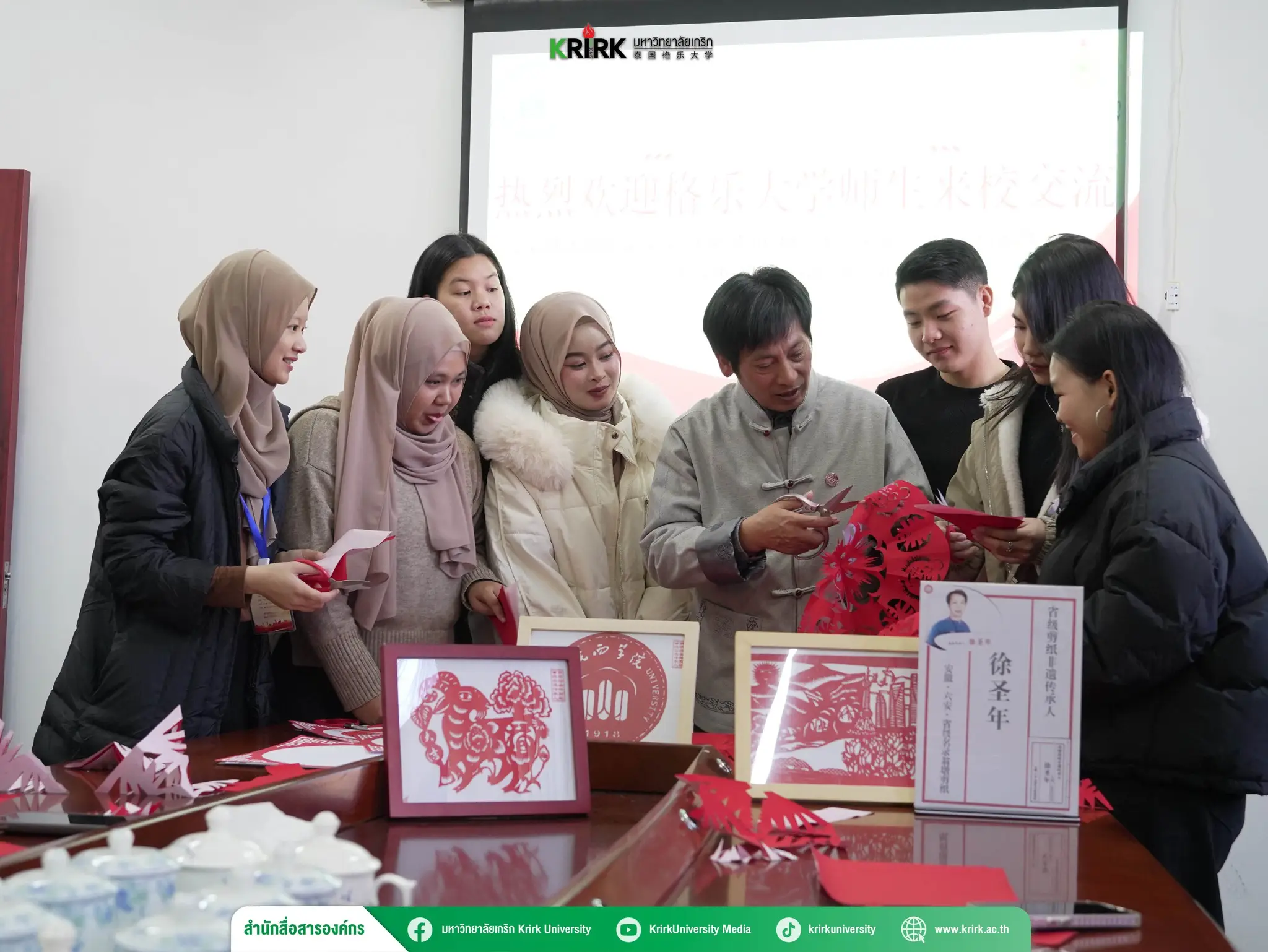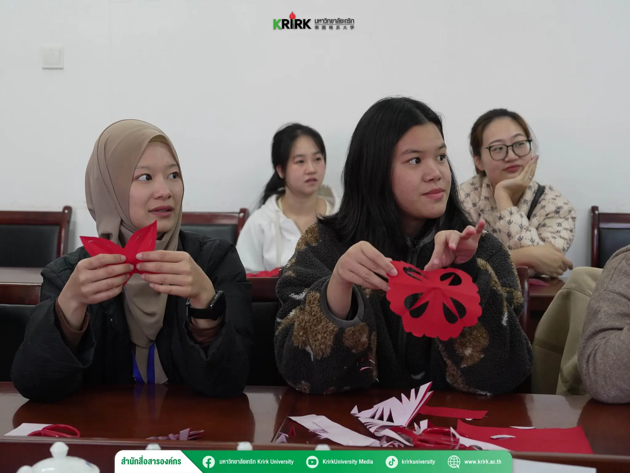 ในช่วงบ่าย กิจกรรมยังคงดำเนินต่อด้วยการเรียนรู้ศิลปะการตัดกระดาษจีน (剪纸, Jian Zhi) จากอาจารย์ผู้เชี่ยวชาญทางด้านศิลปะพื้นบ้านจีน นักศึกษาไทยได้รับโอกาสทดลองตัดกระดาษลายต่าง ๆ โดยมีอาจารย์ให้คำแนะนำอย่างใกล้ชิด
