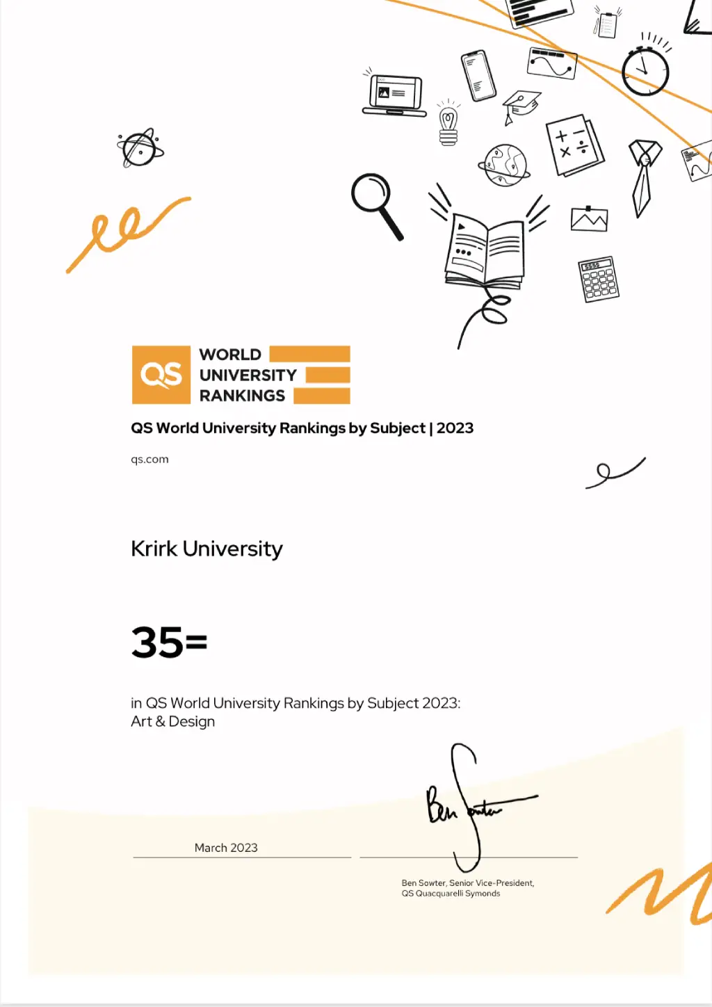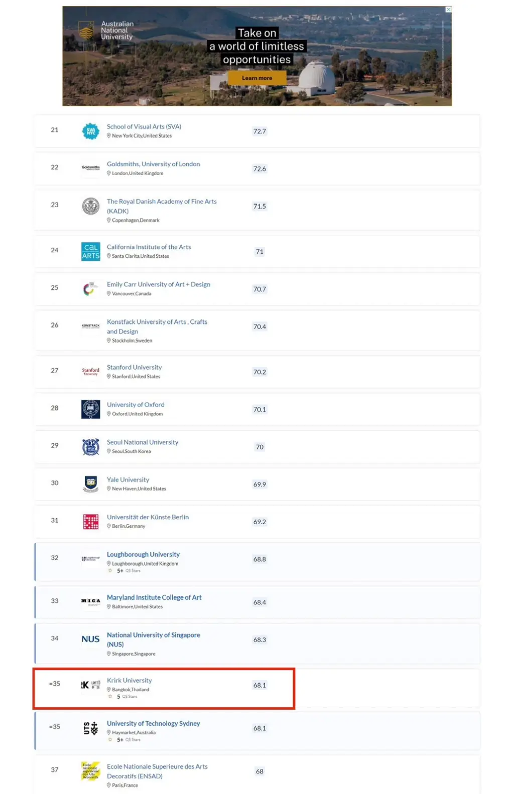 มหาวิทยาลัยเกริก ติดอันดับ 1 ของประเทศไทย อันดับ 7 ของเอเชีย และอันดับที่ 35 ของโลก ในสาขาวิชา “ศิลปะและการออกแบบ” จากการจัดอันดับของ QS World University Rankings by Subject 2023