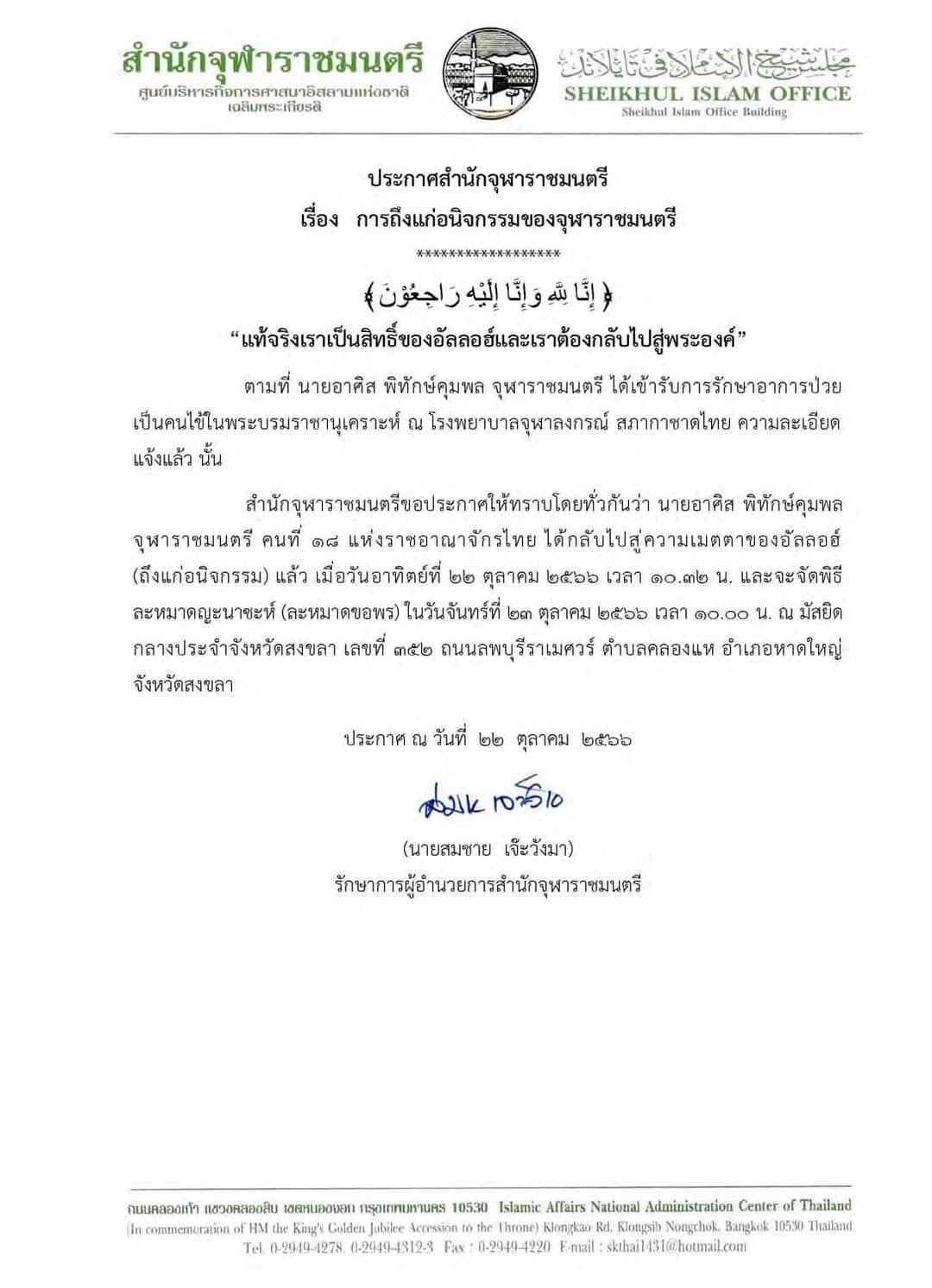 มหาวิทยาลัยเกริก ขอแสดงความอาลัยต่อการถึงแก่อนิจกรรมของ นายอาศิส พิทักษ์คุมพล จุฬาราชมนตรี