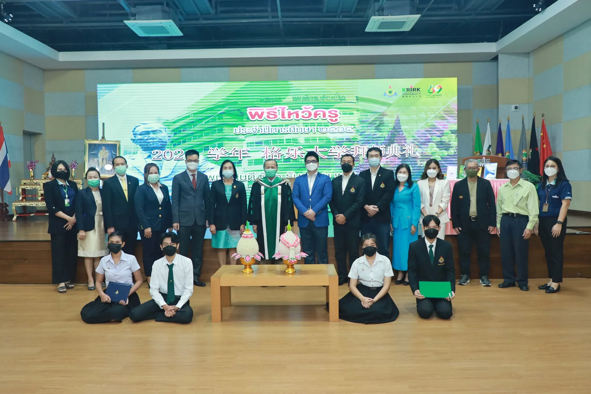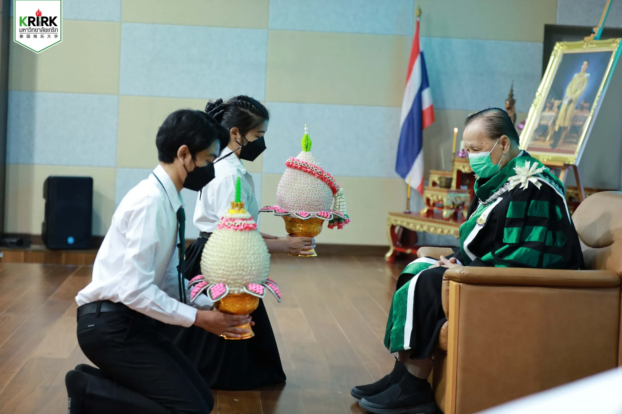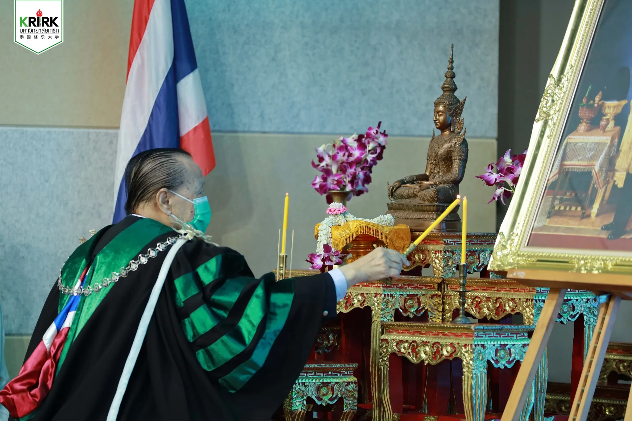 ภาพบรรยากาศ “พิธีไหว้ครู” ประจำปีการศึกษา 2564 จัดโดยสำนักกิจการนักศึกษา มหาวิทยาลัยเกริก ภายในงานวันนี้ทางมหาวิทยาลัยเกริกได้รับเกียรติจาก ศาสตราจารย์ดร.นายแพทย์กระแส ชนะวงศ์ อธิการบดีมหาวิทยาลัยเกริก เป็นประธานในพิธีรับพานไหว้ครูจากตัวแทนนักศึกษา และท่านยังได้มอบประกาศนียบัตรให้แก่ ตัวแทนคณะกรรมการองค์การนักศึกษา และประกาศนียบัตรแก่นักศึกษาที่เรียนดี พร้อมให้โอวาทแก่นักศึกษาที่เข้าร่วมงานในครั้งนี้ งานจัดขึ้นในวันพฤหัสบดีที่ 2 ธันวาคม 2564 ณ ศูนย์ประชุมวิชาการนานาชาติ มหาวิทยาลัยเกริก ผ่านระบบ Facebook Live