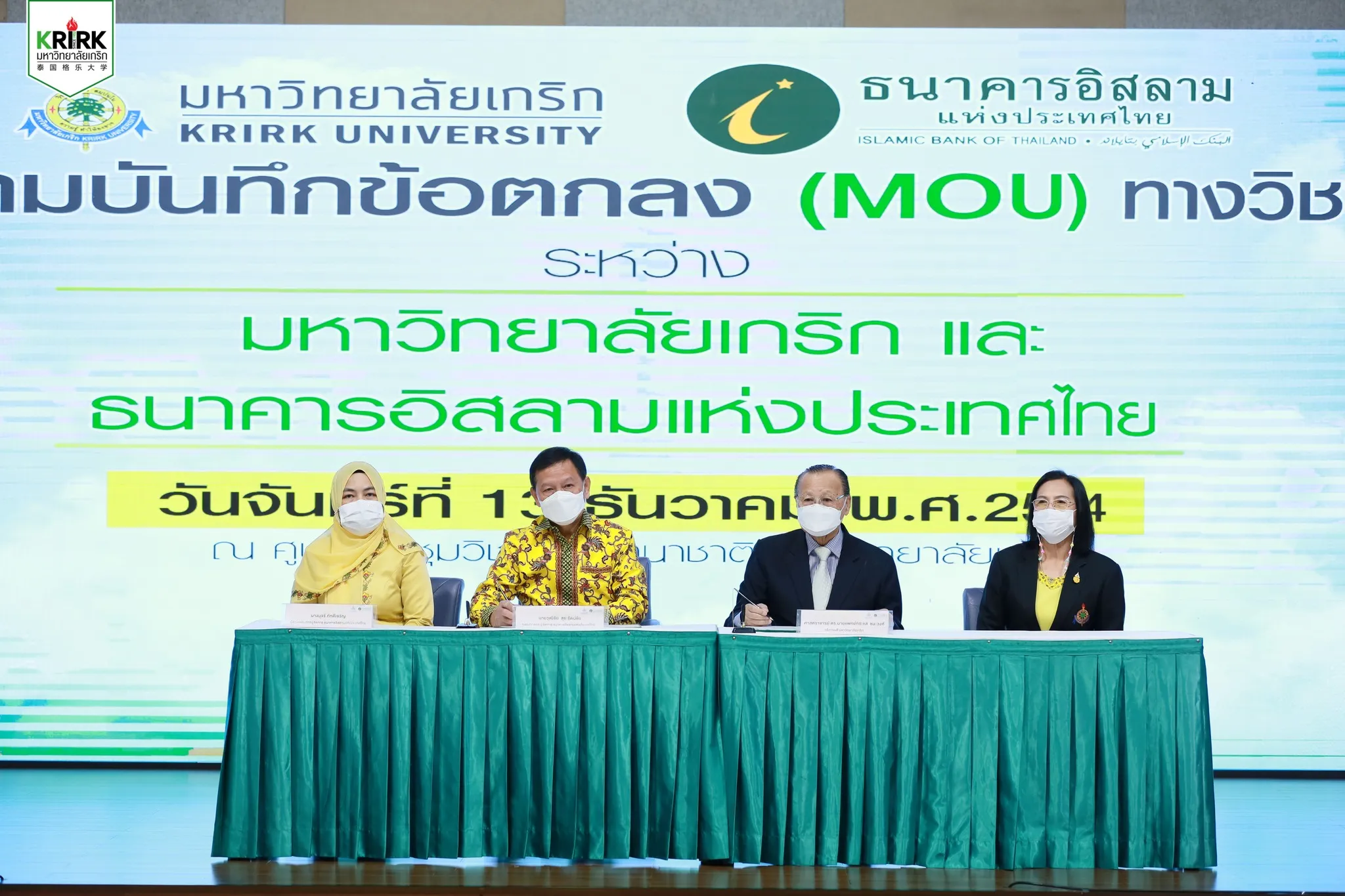 วันนี้ 13 ธันวาคม 2564 ณ ศูนย์ประชุมวิชาการนานาชาติ มหาวิทยาลัยเกริก นำโดย ศาสตราจารย์ ดร.นายแพทย์กระแส ชนะวงศ์ อธิการบดีมหาวิทยาลัยเกริก ลงนามบันทึกข้อตกลงความร่วมมือ (MOU) ทางวิชาการกับ ธนาคารอิสลามแห่งประเทศไทย โดยมี นายวุฒิชัย สุระรัตน์ชัย กรรมการและผู้จัดการธนาคารอิสลามแห่งประเทศไทย