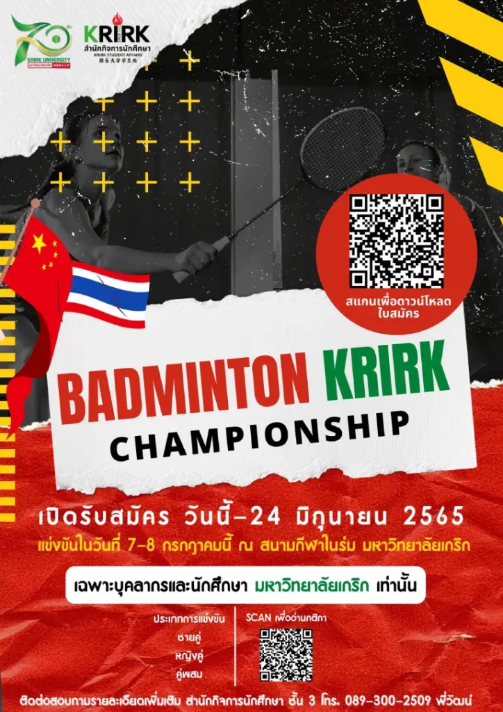 สำนักกิจการนักศึกษา มหาวิทยาลัยเกริก ได้จัดกิจกรรมการแข่งขันแบดมินตันเกริก แชมเปี้ยนชิพ
