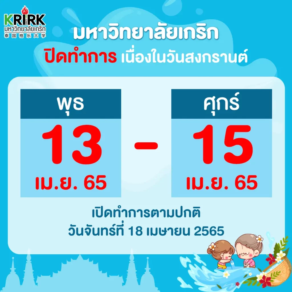 ประกาศหยุดทำการเนื่องในวันสงกรานต์ ปี 2565
