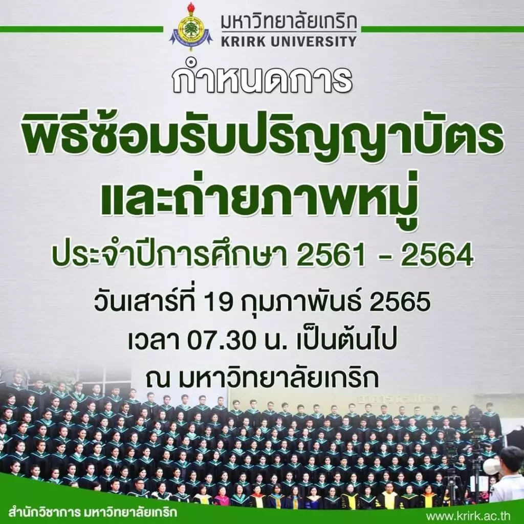 กำหนดการและลำดับการถ่ายภาพหมู่บัณฑิต มหาบัณฑิต และดุษฎีบัณฑิต ในวันเสาร์ที่ 19 กุมภาพันธ์ 2565 ณ มหาวิทยาลัยเกริก