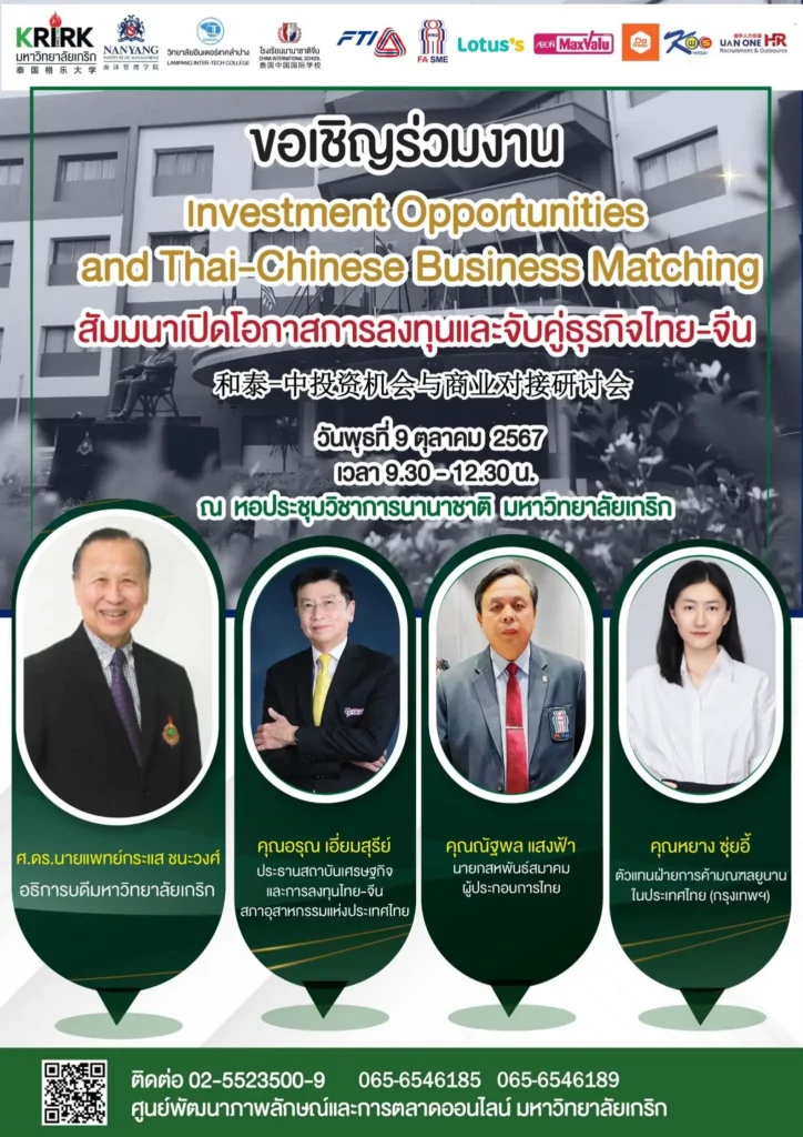 ขอเชิญผู้สนใจร่วมงานสัมมนาเปิดโอกาสการลงทุนและจับคู่ธุรกิจไทย-จีน และพิธีลงนามความร่วมมือระหว่างมหาวิทยาลัยเกริก และองค์กรภาคธุรกิจ