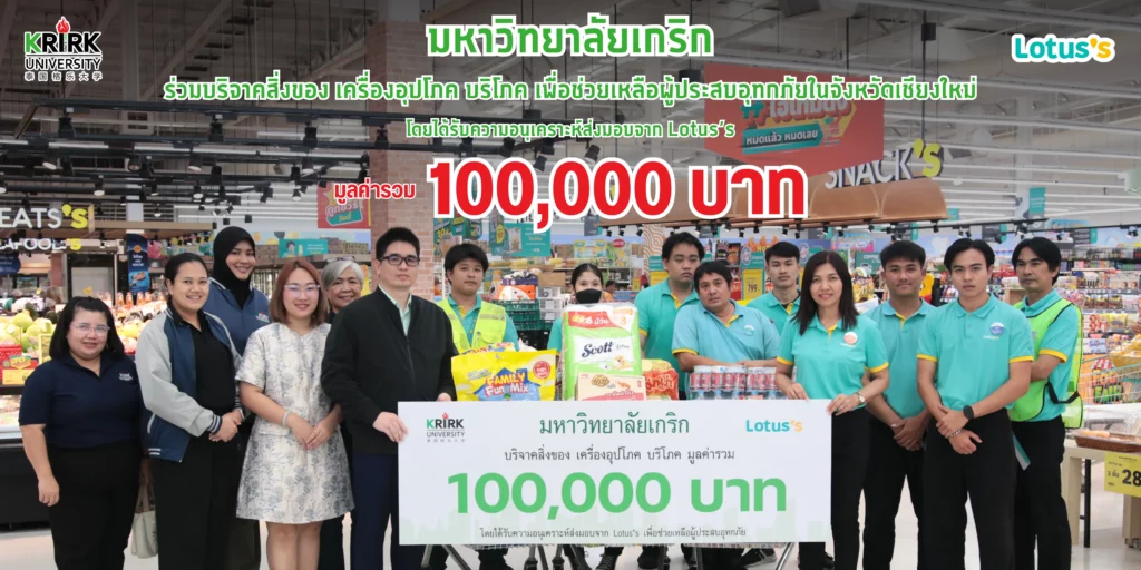 มหาวิทยาลัยเกริก บริจาคสิ่งของ เครื่องอุปโภค บริโภค เพื่อช่วยเหลือผู้ประสบอุทกภัยในจังหวัดเชียงใหม่ โดยได้รับความอนุเคราะห์ส่งมอบจาก Lotus’s