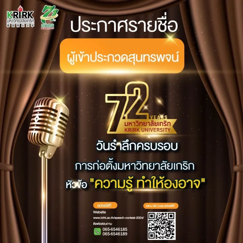 ประกาศรายชื่อผู้เข้าประกวดสุนทรพจน์ หัวข้อ “ความรู้ทำให้องอาจ”