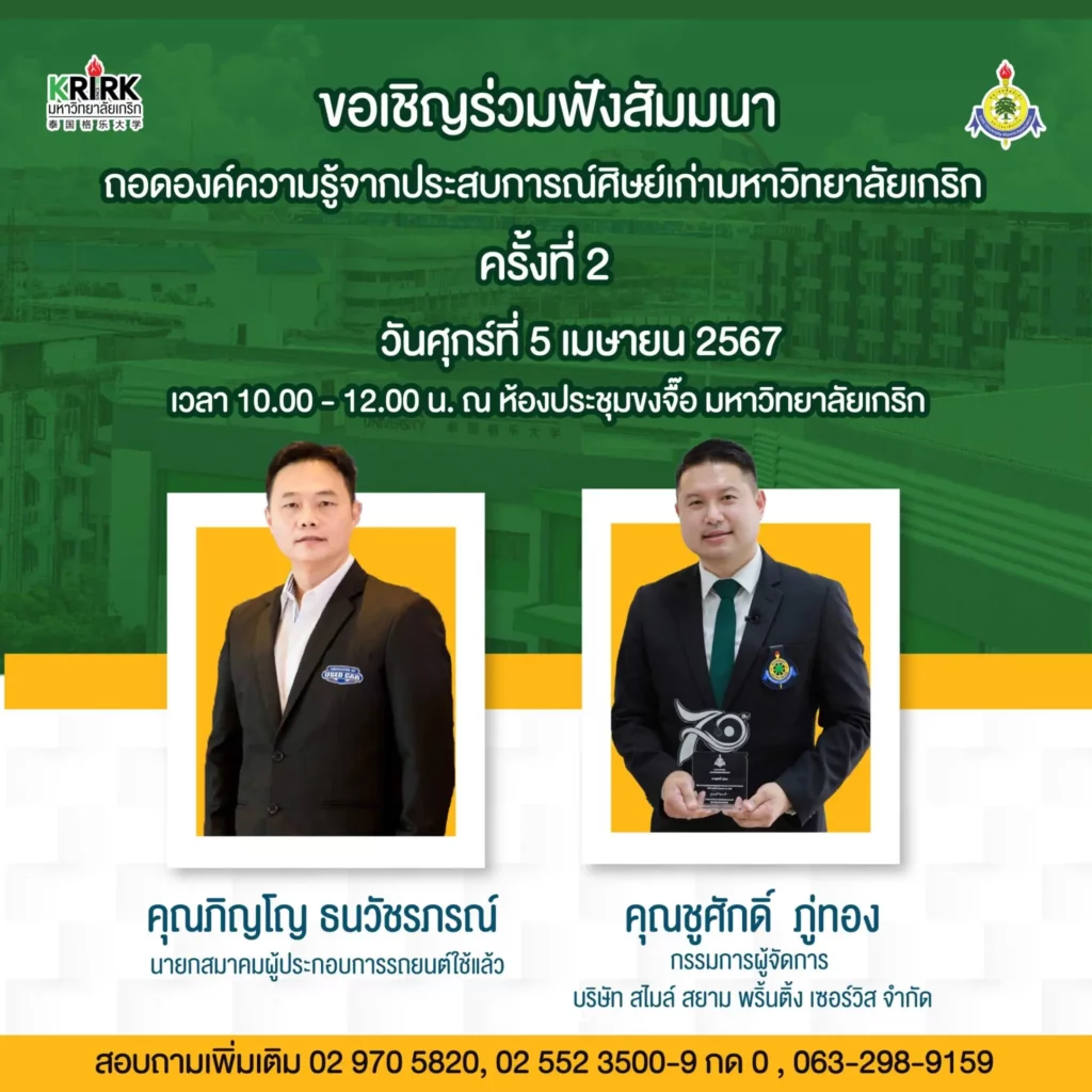 มหาวิทยาลัยเกริก ร่วมกับ สมาคมศิษย์เก่ามหาวิทยาลัยเกริก ขอเชิญชวนศิษย์เก่าและบุคคลทั่วไปที่สนใจร่วมฟังสัมมนาหัวข้อ “ถอดองค์ความรู้จากประสบการณ์ศิษย์เก่า ครั้งที่ 2”