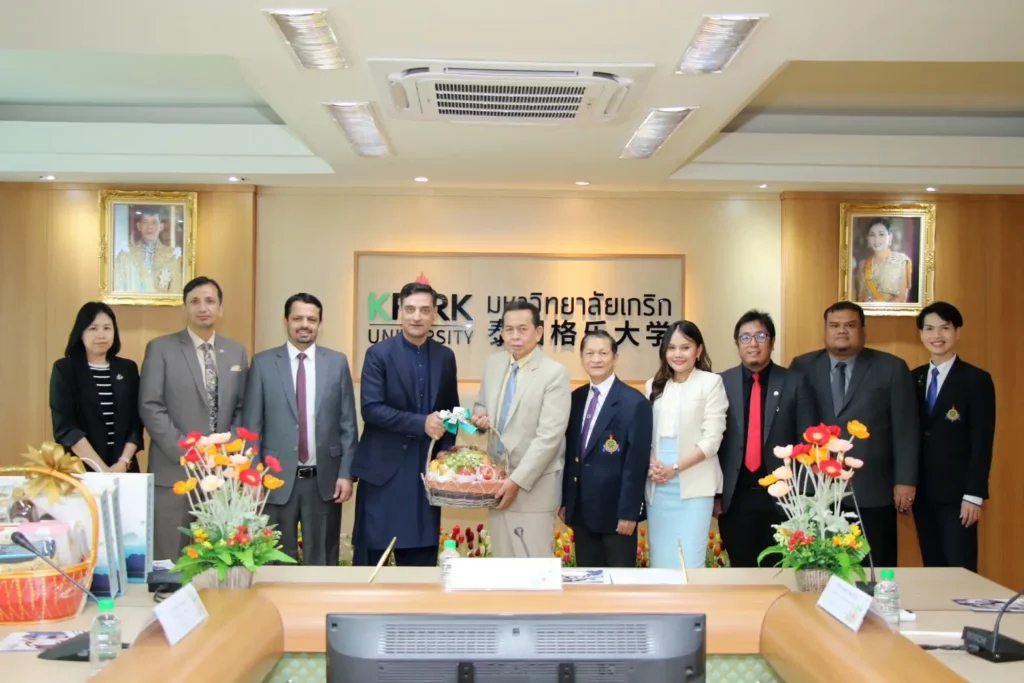รองผู้อำนวยการฝ่ายวิชาการ และรองผู้อำนวยการฝ่ายประสานกิจกรรมระหว่างประเทศ ได้ต้อนรับทีมผู้แทนระดับสูงจากสถานทูตปากีสถานอย่างอบอุ่น และแสดงความขอบคุณแก่ นายยาซีร์ ฮุสเซน ผู้แทนฯสำหรับการเยี่ยมชมมหาวิทยาลัยเกริก